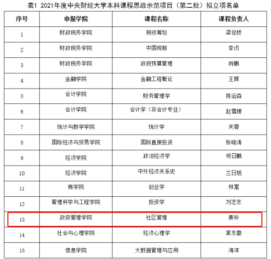 为响应北京市教育委员会要求,全面推进高校课程思政建设,提高立德树人水平,学校组织开展了2021年度校级本科课程思政示范项目(第二批)立项与北京市课程思政示范项目遴选评审工作。经学院推荐、学校初评、校外专家评审,学校立项校级本科课程思政示范课程15项,并推荐5门课程参评北京市课程思政示范课程。其中,bat365官网姜玲教授负责的《社区管理》课程获得校级立项,并获得北京市课程思政示范课程的参评资格。