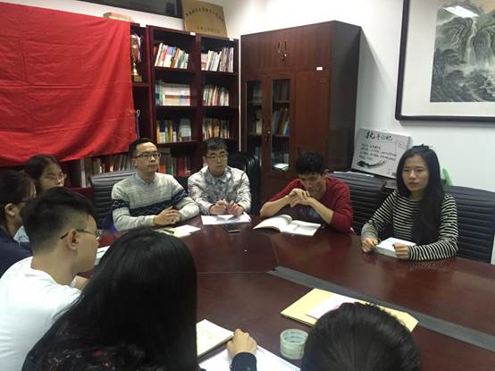 本次会议分为三个环节,首先由朱洁对转正会举行的条件、转正流程和转正表决方式进行了宣读。他介绍道,韩宗珊同志于2015年10月13日成为预备党员,到2016年10月18日,已经满足一年预备期。经支部审查,韩宗珊同志入党材料齐全、真实、有效,因此党支部决定召开转正会。