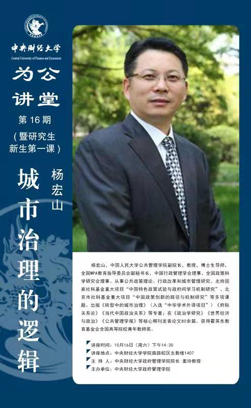嘉宾简介:杨宏山,中国人民大学公共管理学院副院长,教授,博士生导师,全国MPA教育指导委员会副秘书长,中国行政管理学会理事,全国政策科学研究会理事。从事公共政策理论、行政改革和城市管理研究。主持国家社科基金重大项目“中国特色政策试验与政府间学习机制研究”、北京市社科基金重大项目“中国政策创新的路径与机制研究”等多项课题。出版《转型中的城市治理》(入选“中华学术外译项目”)《府际关系论》《当代中国政治关系》等专著;在《政治学研究》《世界经济与政治》《公共管理学报》等核心期刊发表论文80余篇。获得霍英东教育基金会全国高等院校青年教师奖。