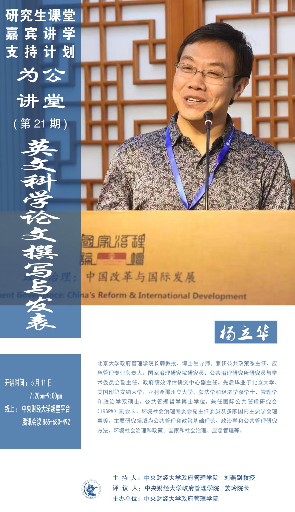 嘉宾简介:杨立华,北京大学bat365中文官网登录入口长聘教授、博士生导师,兼任公共政策系主任、应急管理专业负责人、国家治理研究院研究员、公共治理研究所研究员与学术委员会副主任、政府绩效评估研究中心副主任。先后毕业于北京大学、美国印第安纳大学、亚利桑那州立大学,获法学和经济学双学士、管理学和政治学双硕士、公共管理哲学博士学位。兼任国际公共管理研究会(IRSPM)副会长、环境社会治理专委会副主任委员及多家国内主要学会理事等。主要研究领域为公共管理和政策基础理论、政治学和公共管理研究方法、环境社会治理和政策、国家和社会治理、应急管理等。