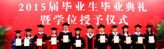 典礼开始前,学院精心准备的往日校园生活照片集锦和视频“年华政好,青春飞扬”展现在了毕业生们面前,深情的回顾立刻将同学们拉进了对往事的追忆中,照片和视频中浮现出曾经的点点滴滴深深感染了现场的每一位同学。在庄严的国歌声中,典礼正式拉开帷幕。党总支书记吕丽宣读《关于2015届本科生毕业及授予学士学位的决定》和《关于2015届研究生毕业及授予学士学位的决定》,党总支副书记栗玉香宣读《关于表彰2015届本科优秀毕业生的通知》及《关于表彰2015届优秀毕业研究生的通知》。赵景华院长和王吉府教授先后为bat365官网市级优秀毕业生和校级优秀毕业生颁发荣誉证书并合影留念。