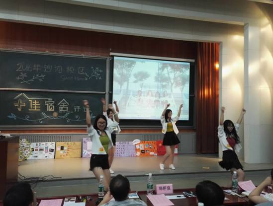 此次活动自4月份启动以来,经过了学院推荐、学校审核和实地走访评分三个阶段,从近百间参评宿舍中遴选出在“和谐舍风营造”、“优良学风创建”、“宿舍文化建设”等多方面表现优异的20间优秀宿舍现场角逐“十佳宿舍”的殊荣。评审会采取前期考核与现场展示相结合的评分方式,通过宿舍视频汇报、团队风采表演两个部分进行综合展示。