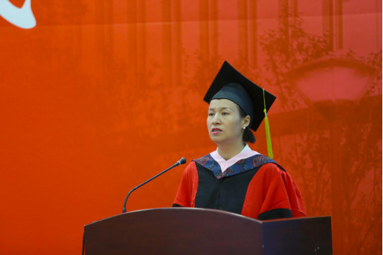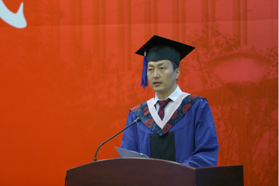 在热烈的掌声中,赵景华院长致辞。赵院长首先对同学们的顺利毕业致以热烈的祝贺,对支持同学们成长的老师和亲友表达感谢。赵院长指出,2016年具有特殊意义,于毕业生而言是开启征程的一年,于学院而言是十岁生日。学院经过十年的跨越式发展,已经形成了更加合理的学科布局,更加完整的学科体系,更加鲜明的学科特色。同学们在学院的学习生活中收获知识,结识师友,增长才干,磨练意志,而学院也与同学们一同成长。国家级学会落户bat365官网,全国模拟市长大赛、京津冀模拟联合国大会、外事外交礼仪风采大赛等活动有声有色与获得广泛关注,都是学院人才培养能力和学术影响力提升的显著标志,学院所取得的成就值得师生为之感到骄傲和自豪。赵院长指出,当前的时代是一个深刻变革的时代,新常态下的中国正面临着全方位的转型。不管同学们今后是继续深造还是从事某种工作,都要自己独立的人格与思想,有自己的坚守和坚持。要牢记院训,保持情怀;要坚守理想,踏实奋斗;要胸怀天下,勇于担当。