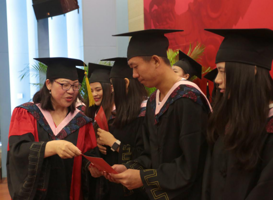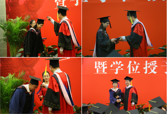 典礼最后进行了学位授予仪式。伴随着欢快的乐曲,赵景华院长逐一为2016届毕业生拨正流苏,颁发毕业证书和学位证书。赵院长笑容亲切温暖,与同学们一一握手,合影留念,深深感染和鼓舞了每一位上台受礼的毕业生。