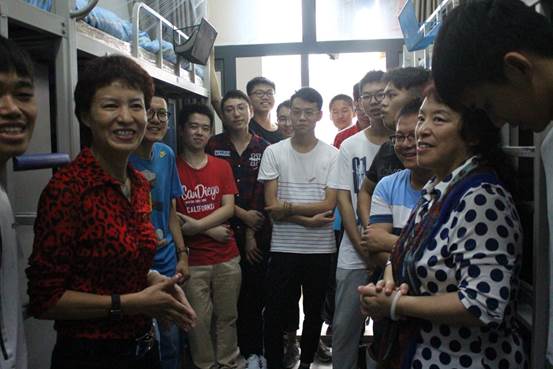 2017年9月15日上午,bat365中文官网登录入口副校长赵丽芬、bat365中文官网登录入口党委书记吕丽、副院长姜玲、团总支书记宁钰皓以及新生辅导员黄莎共同走访bat365官网2017级新生宿舍,面对面倾听新生的声音,了解同学们的学习生活情况。