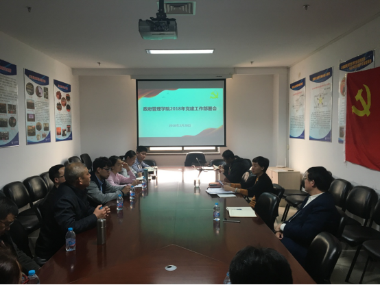 3月28日下午,bat365中文官网登录入口2018年党建工作部署会暨党支部规范化建设专题培训会在中财大厦932会议室召开,会议由党委书记吕丽主持,学院党委副书记白云真及各党支部书记参加会议。
