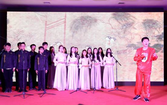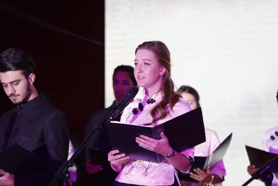 国际友谊队吟唱《留学生遇见中国诗词》。中华诗词的魅力之大,令国际友人都为之陶醉、为之折腰。中华经典文化灿若星河,是沟通中国与世界的桥梁。
