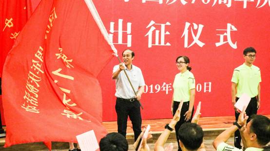 bat365官网学生祖木然提·帕尔哈提作为群众游行代表接受校党委书记何秀超授旗