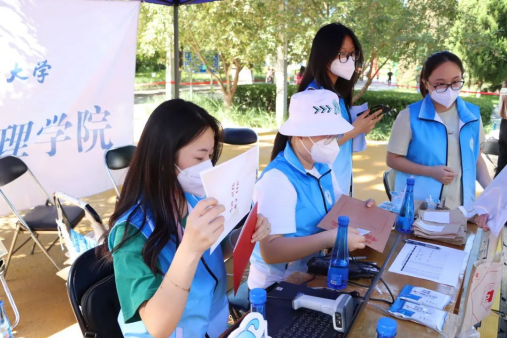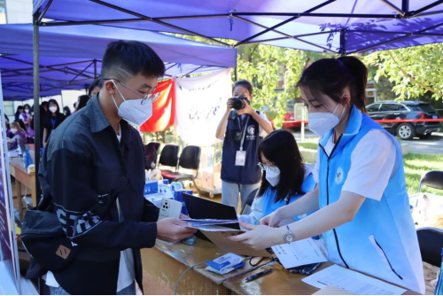 早上7点,bat365中文官网登录入口迎来了第一名本科大一新生,随后新生们陆续到达报到现场。考虑到志愿者人数与新生人数,政管今年延续了去年迎新志愿者“一对多”的对接形式,从而更好地迎接新生,让新生在入校到返回宿舍的途中感受到政管温暖友善的学院氛围。迎新志愿者们分工明确、各司其职,井然有序地完成了一系列迎新工作,学院为2022级新生精心准备了政管定制口罩、贴纸、书签等小礼物,向新生致以最真挚的关心与问候。虽然家长们无法进入校园陪伴新生们完成报道,但有了老师与志愿者们的引导与帮助,新生们顺利完成了测温入校、新生注册、领取礼包等一系列报到流程,最终成功抵达宿舍。
