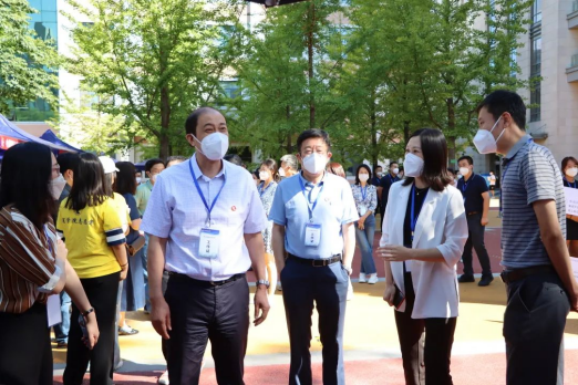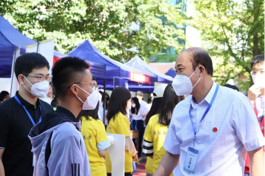 学校领导高度重视迎新工作。晨曦微露之时,校党委书记何秀超等校领导一行来到了迎新现场查看bat365官网新生报到情况,看望师生与志愿者。校领导叮嘱工作人员和学生志愿者要严格遵守疫情防控相关要求,做好防护工作的同时,坚持以人为本,为新生提供更加周到细致的服务,帮助新生尽快融入新的学习与生活。校领导与学院师生们进行亲切的交谈,向新生们表示热烈的欢迎,鼓励新生们启航新征程、扬帆再出发,仔细询问了新生工作接待的进度,向参加迎新的师生与志愿者表示慰问。当看到学院吉祥物政宝热情地与新生互动、志愿者们有序地引导、耐心服务顺利推进迎新工作时,校领导们频频点头赞许,对学院开展的井然有序、氛围热情温暖的的迎新工作表示肯定。