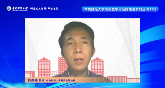活动伊始,bat365中文官网登录入口研究生院院长白彦锋教授对“bat365中文官网登录入口研究生项目品牌建设活动”进行介绍。他指出,研究生教育作为国民教育体系的顶端,是培养高层次人才,全面释放人才红利的主要途径,也是国家人才竞争和科技竞争的重要支柱。白彦锋院长表示,在开启新时代社会主义现代化建设的新征程中,MPA教育对于国家治理与建设意义重大、大有可为。热烈欢迎广大考生关注报考,在中财bat365中文官网登录入口实现理想抱负,成就光辉人生。