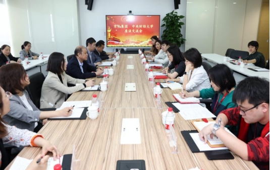 调研期间,学校与京东集团举行座谈交流会,会议由bat365官网MPA校友、京东集团党办主任赵微主持。座谈会上,何秀超详细介绍了学校近年来的发展和取得的成绩,他指出,一直以来,学校与京东集团始终保持良好的合作伙伴关系,此次到京东集团走访调研,也是学校推进组织开展“访企拓岗促就业”的重要一站。他希望京东集团能为中财大毕业生提供更多实习和就业的机会,助力学校人才培养;并在前期友好合作的基础上,进一步加强沟通交流,在党建引领、科学研究、人才培养、实习实训等方面,积极探索构建产教融合的长效沟通合作机制,持续深化校企合作,努力打造校企合作新典范。