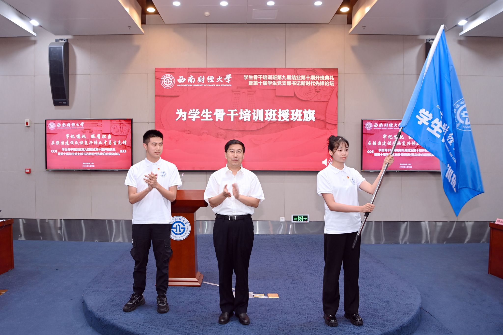 赵建军为第十期学生骨干培训班授班旗。活动现场为第九期学生骨干培训班学员颁发结业证书,与会人员共同观看了学生骨干培训班专题视频。该班自2014年开班以来,已成功举办9期,结业468名学员,积极发挥优秀学生骨干示范引领作用,激励beat365青年努力成长为德智体美劳全面发展的时代新人。