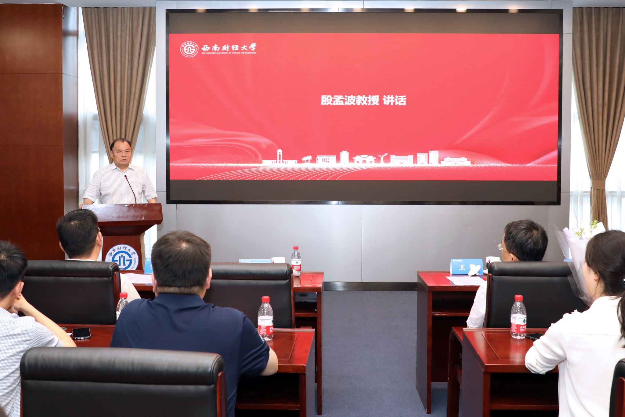 尹庆双在致辞中对殷孟波教授为金融教育事业做出的卓越贡献和无私奉献表示感谢。他表示,荣获“殷孟波金融教育基金奖教(学)金”是一份荣誉,更是一份期盼和责任。他勉励广大师生以殷孟波教授为楷模,赓续其治学精神,砥砺品格、淬炼本领,强化使命担当、聚焦主责主业,为建设金融强国贡献智慧力量。