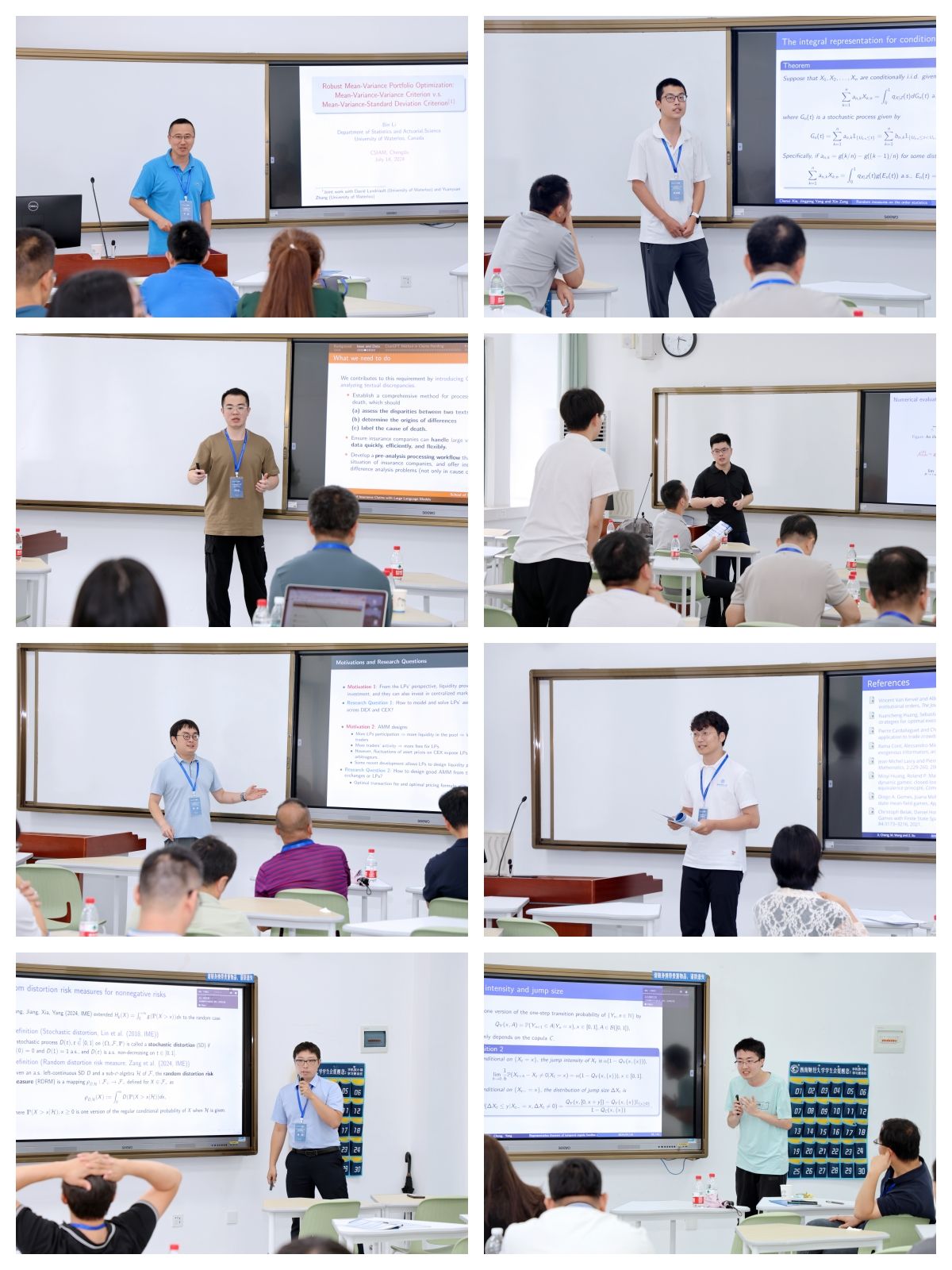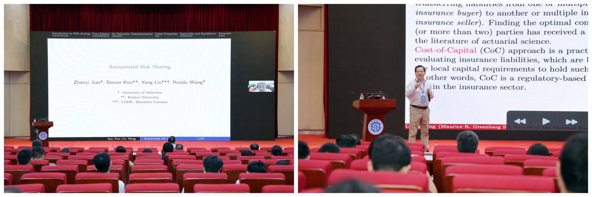 中会报告按照学科分为金融数学、金融工程、金融科技、保险精算四个板块,山东大学冯新伟教授和胡尚明教授、上海交通大学林一青副教授、复旦大学张霜剑研究员、华南师范大学杨舟教授、滑铁卢大学李玉英教授等26位专家聚焦当下前沿问题,分享最新科研报告,共同探讨学科研究领域未来发展方向。