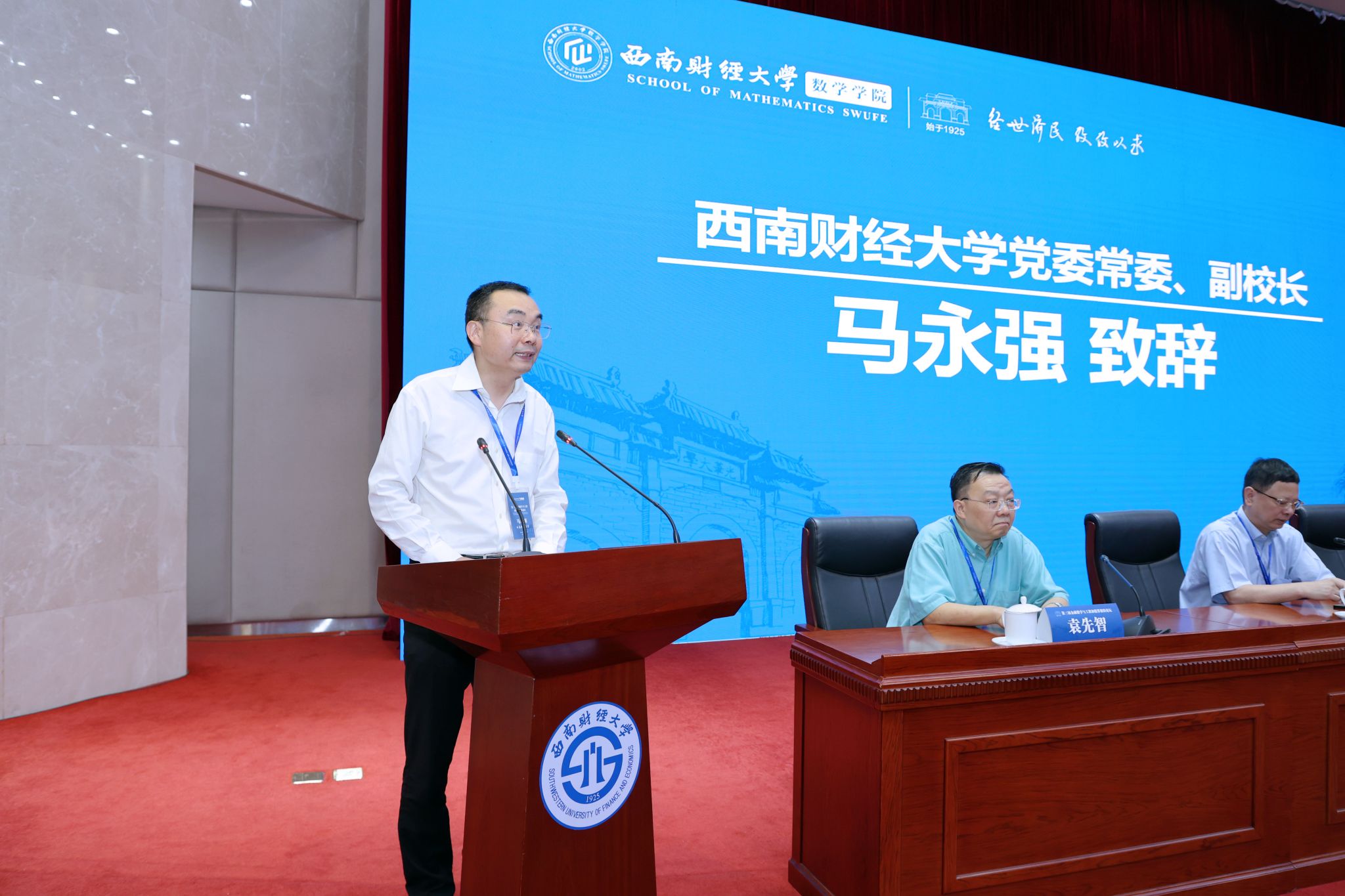 马永强代表学校向各位专家学者表示热烈欢迎,介绍了学校历史沿革、办学特色和数学学院发展概况及建设成果。他表示,举办本次学术论坛旨在贯彻落实学校学科建设大会精神,推动金融数学、金融工程和精算保险等优势特色学科快速发展。他希望本次研讨会能充分发挥智慧分享、思想交流的平台作用,有力推动金融数学、金融工程和精算保险进一步创新发展。
