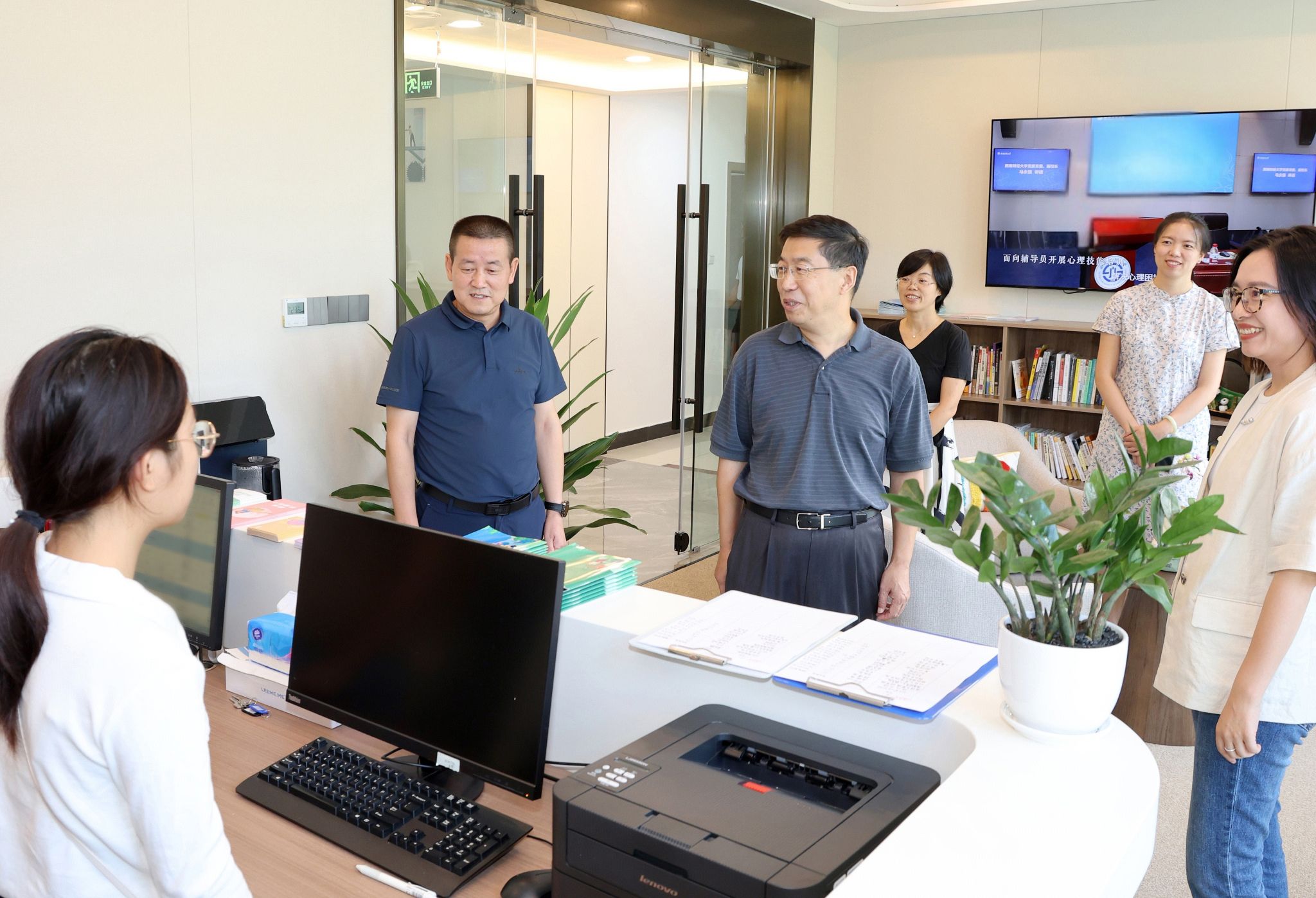 9月11日上午,党委书记赵建军调研一体化积极心理体验中心暨学校心理健康教育中心,看望慰问一线教师,听取工作汇报。党委副书记明海峰、党委办公室主任陈宗权参加调研。