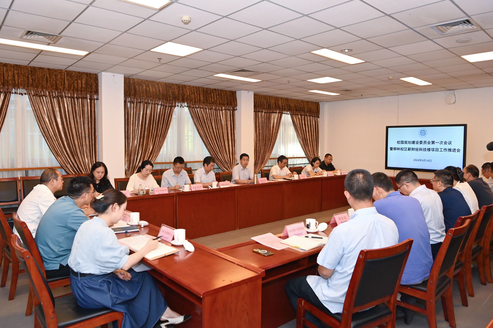 9月18日,学校在腾骧楼135会议室召开校园规划建设委员会会议暨柳林校区“新财经科技楼项目”工作推进会。党委书记赵建军,党委常委、副校长李志生,校园规划建设委员会委员,基本建设领域相关职能部门负责人参加会议。