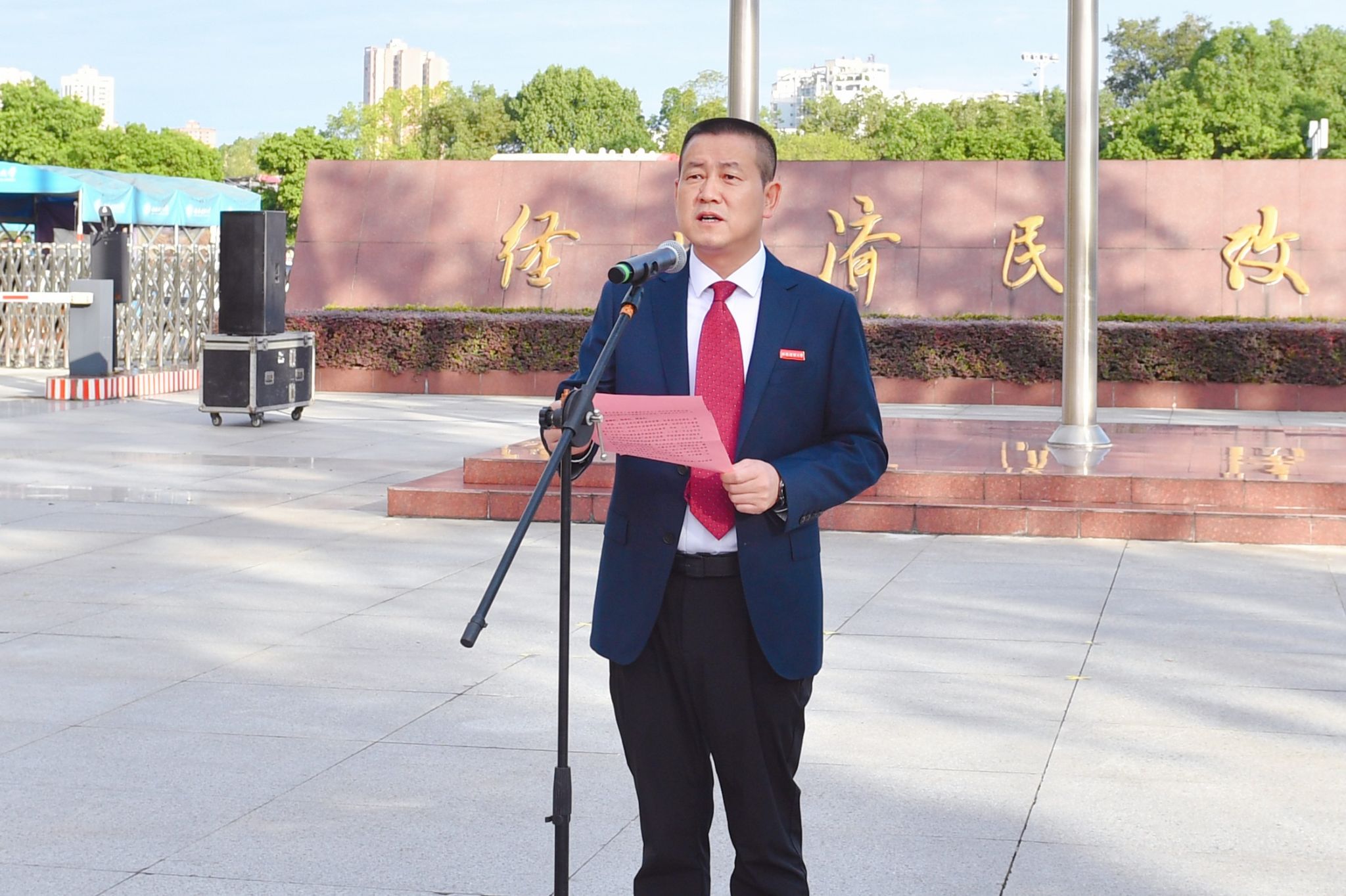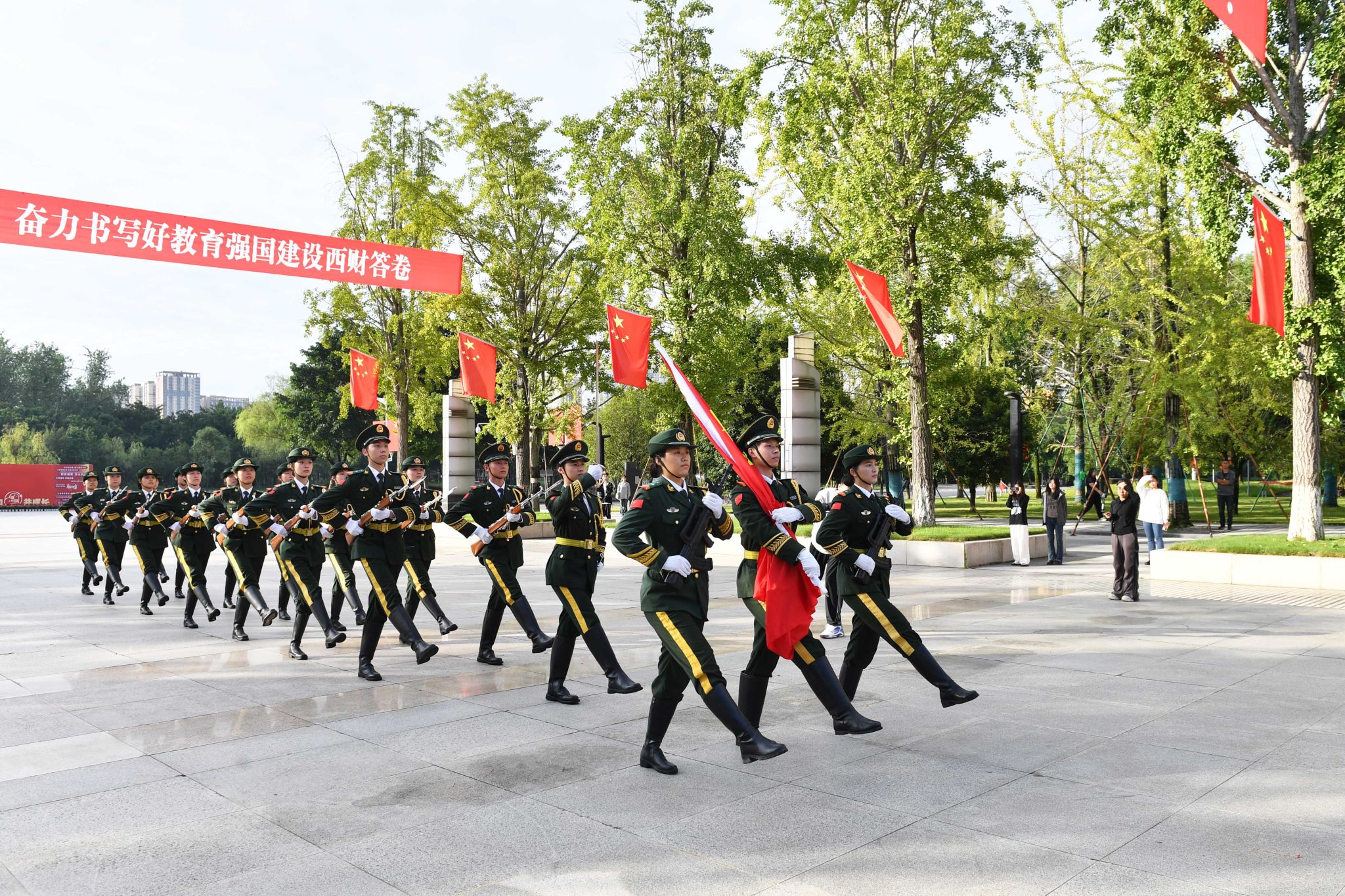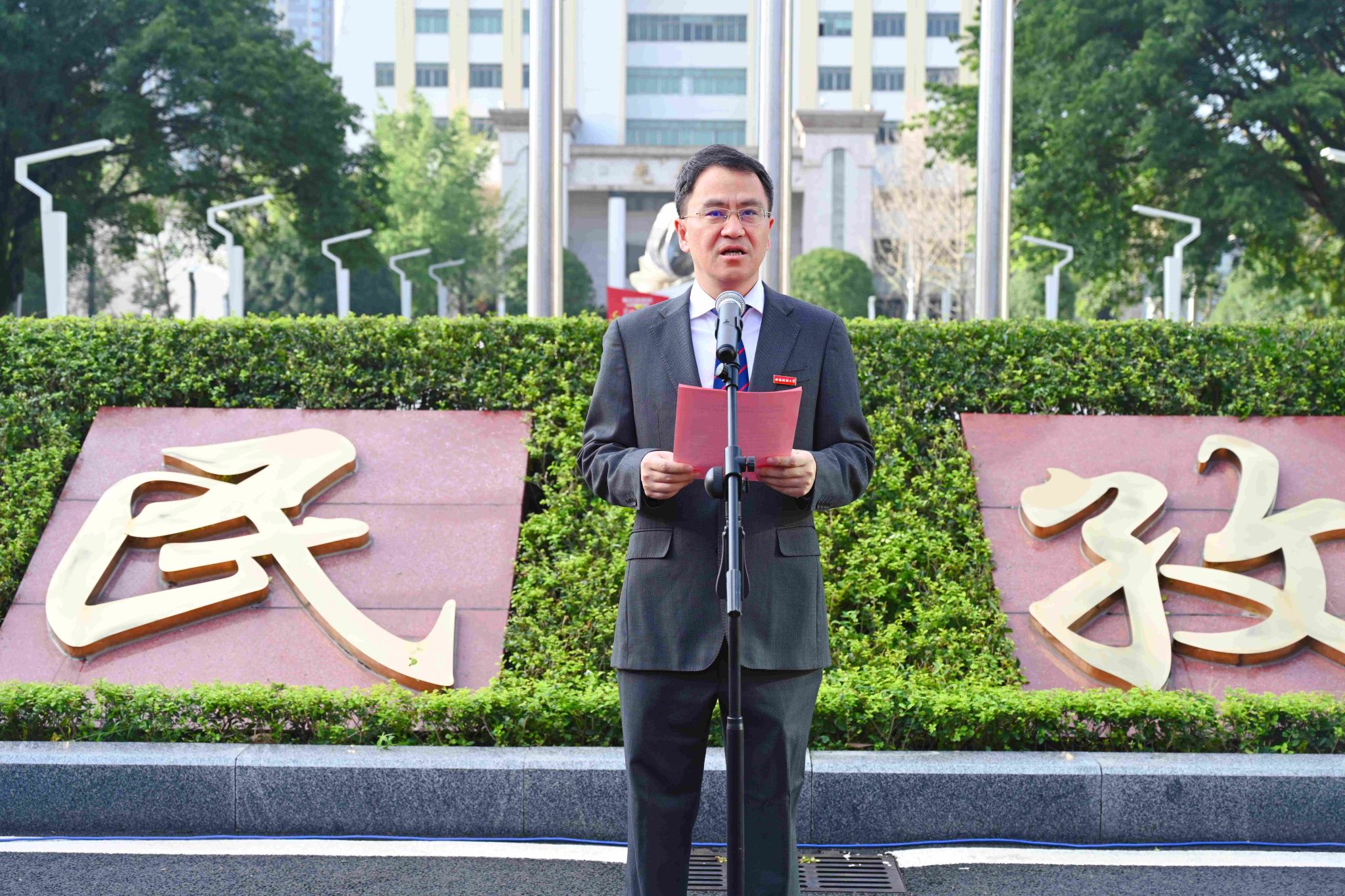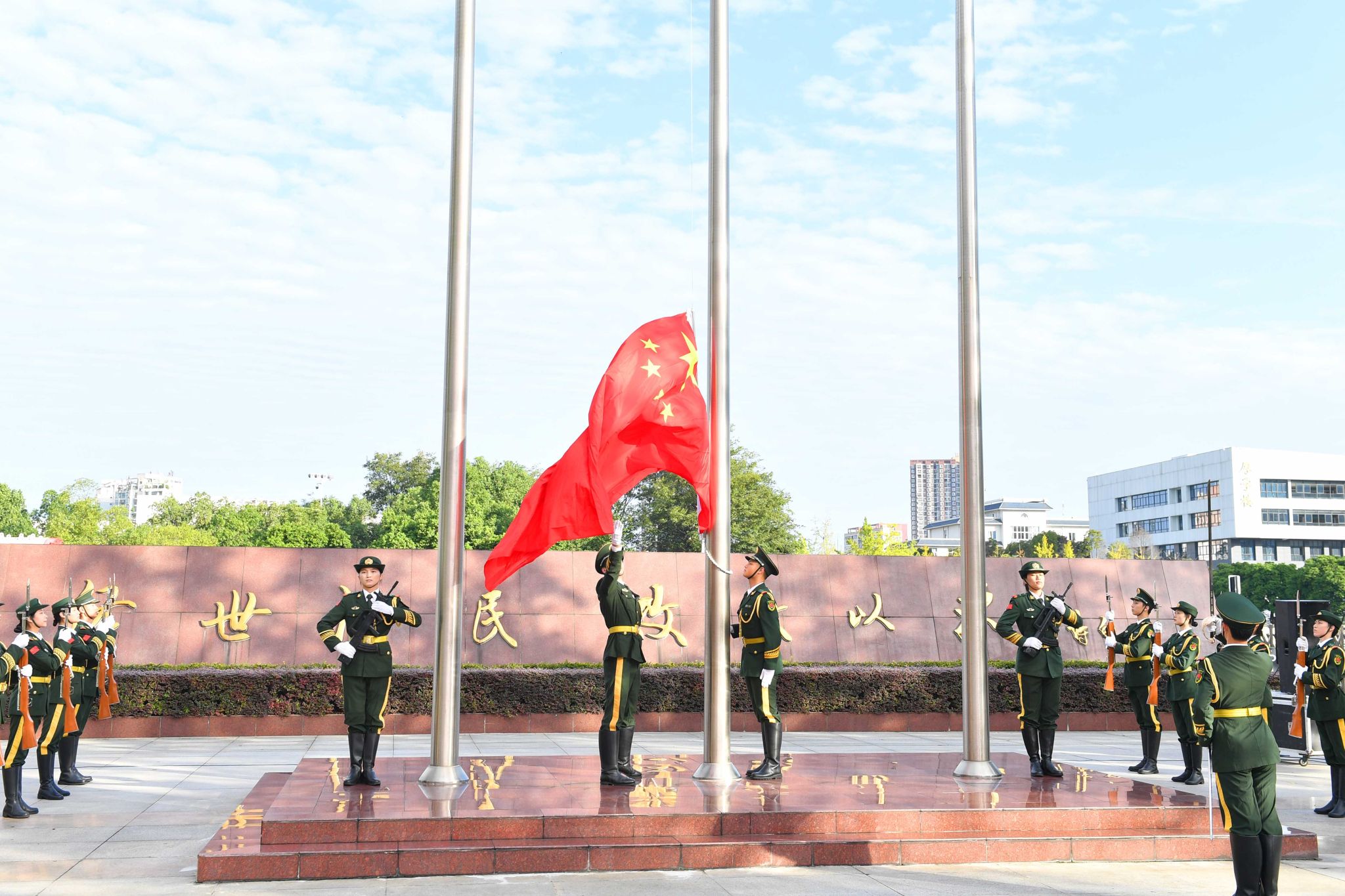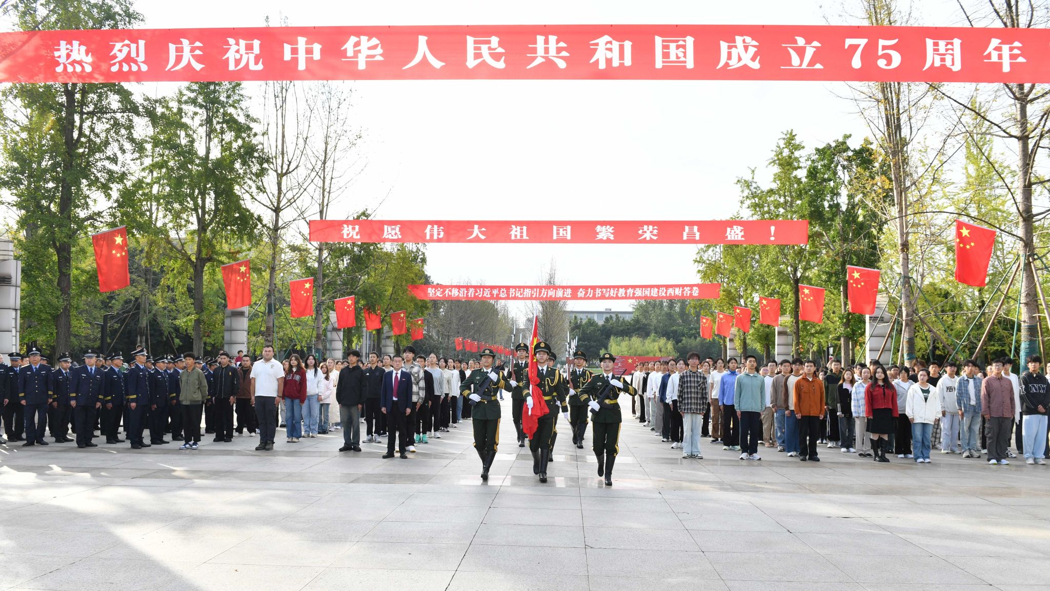 10月1日清晨,学校举行庄严升国旗仪式。师生代表满怀赤诚深情,齐聚光华、柳林两校区北大门广场,共同迎接五星红旗在秋日的金晖中冉冉升起,为祖国母亲献上最诚挚的生日祝福。党委副书记明海峰,党委常委、副校长王擎,两校区师生代表,相关职能部门负责人参加升国旗仪式。