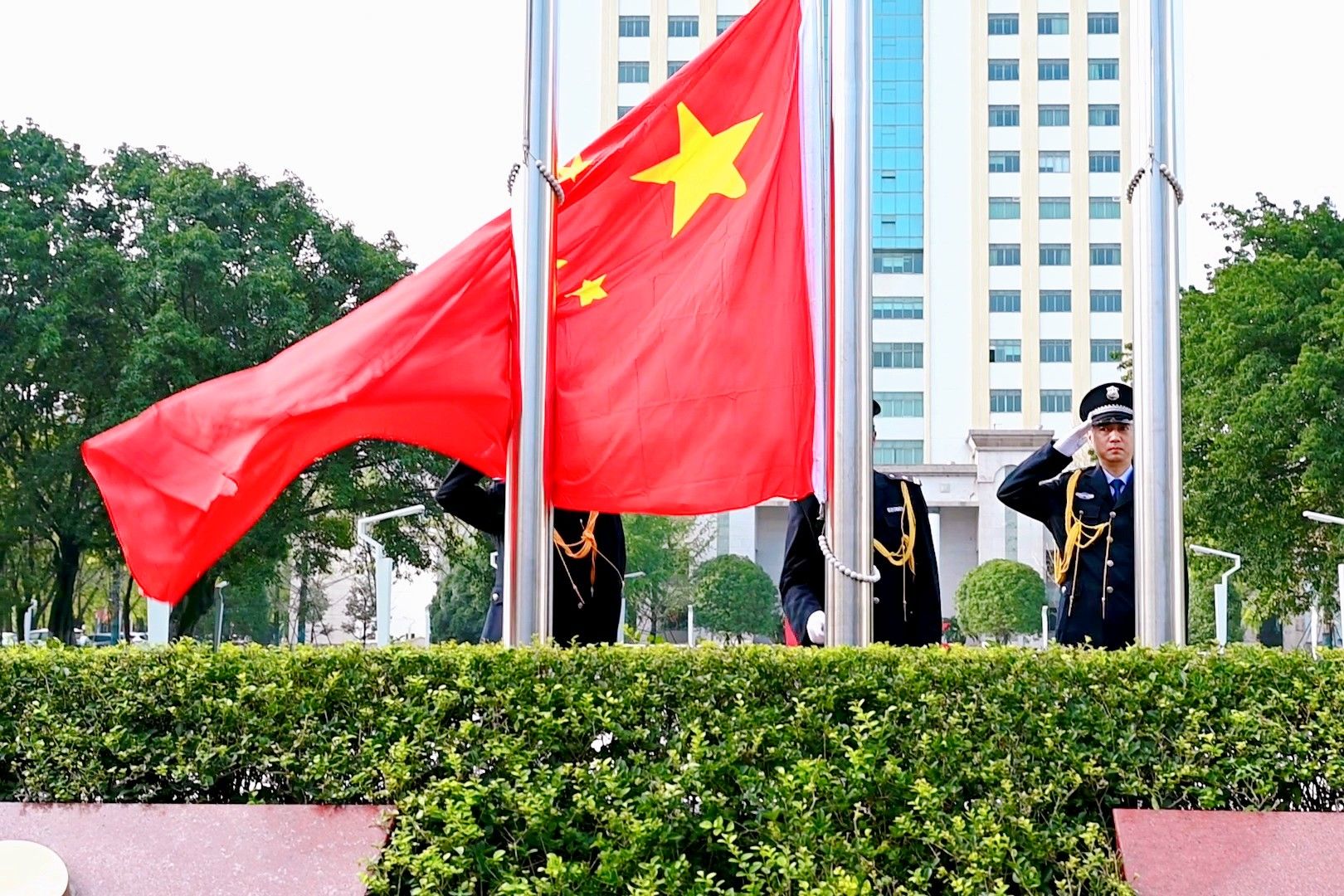 伴随着雄壮激昂的《义勇军进行曲》,五星红旗冉冉升起,那一抹飘扬在长空里的中国红,点燃每一个beat365人的爱国心、报国情、强国志。师生们目光如炬,共同凝视着那面代表着国家尊严与荣耀的五星红旗,共同祝愿祖国繁荣昌盛,人民幸福安康!