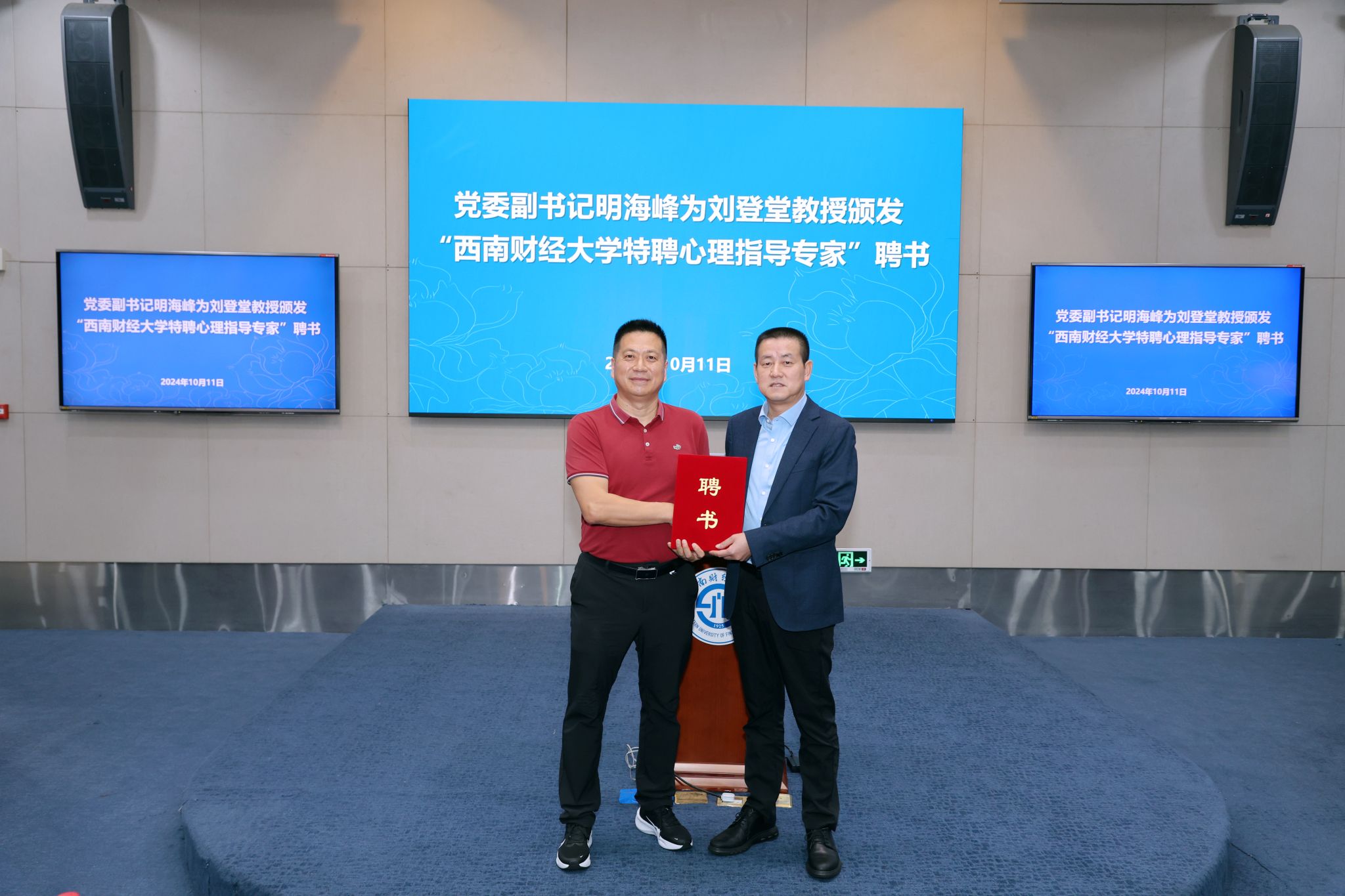 会上,明海峰为刘登堂颁发“beat365vip官网特聘心理指导专家”聘书。