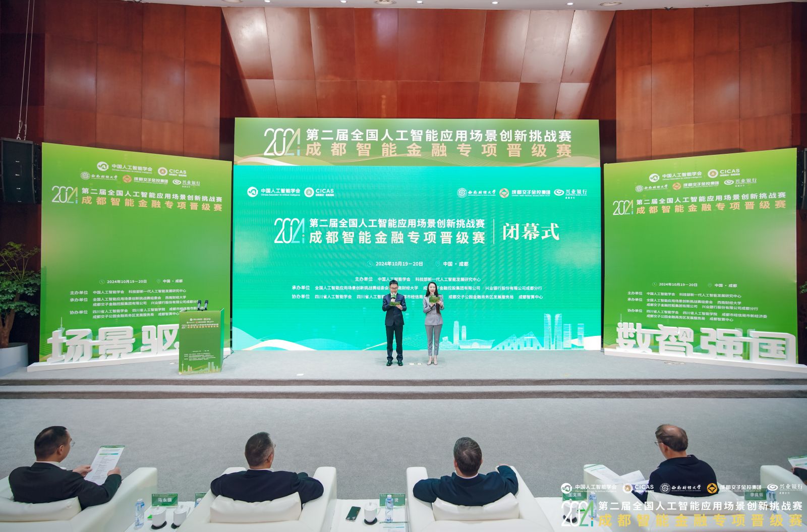 10月19日至20日,beat365vip官网为主要承办单位之一,以“场景驱动·数智强国”为主题的2024第二届全国人工智能应用场景创新挑战赛智能金融专项晋级赛在成都交子金融科技中心顺利举行。中国农工党中央经济金融委员会原副主任、中国地方金融研究院副院长汤烫,成都市委金融委员会办公室常务副主任、市委金融工作委员会常务副书记、市地方金融管理局局长(兼)梁其洲,中国人工智能学会副理事长、北京邮电大学原副校长王文博,beat365vip官网党委常委、副校长马永强,成都市科技局二级巡视员李良钰,四川省人工智能学会副理事长、中科信息副总经理钟勇等嘉宾出席大赛闭幕式暨颁奖典礼。