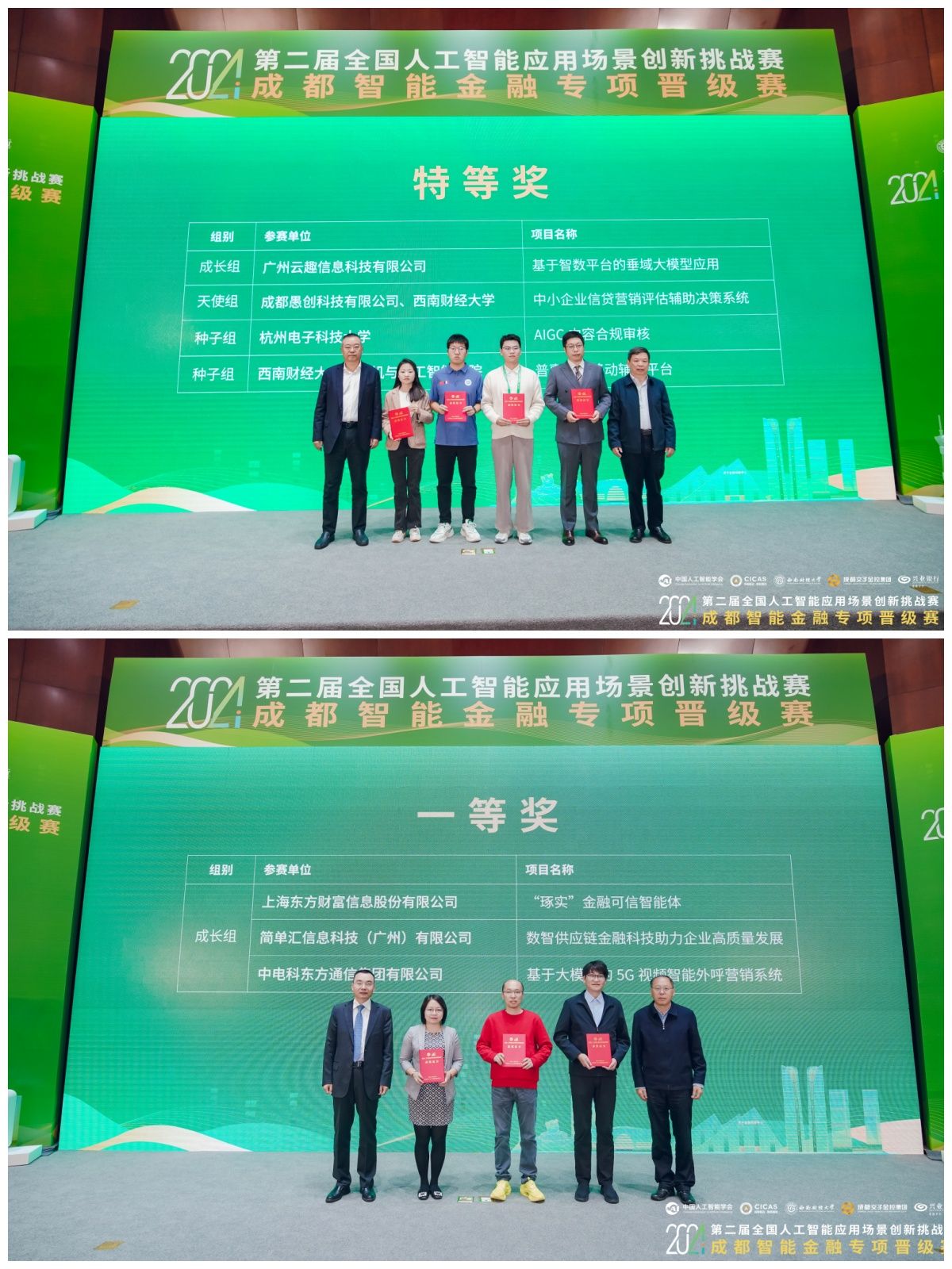 经专家客观、公平、公正评选,共36支参赛团队挑战胜出,4支团队荣获特等奖、9支团队获得一等奖、23支团队获得二等奖。其中,获特等奖及一等奖项目团队将晋级2024第二届全国人工智能应用场景创新挑战赛全国总决赛。学校2支参赛队伍分别荣获特等奖和一等奖。
