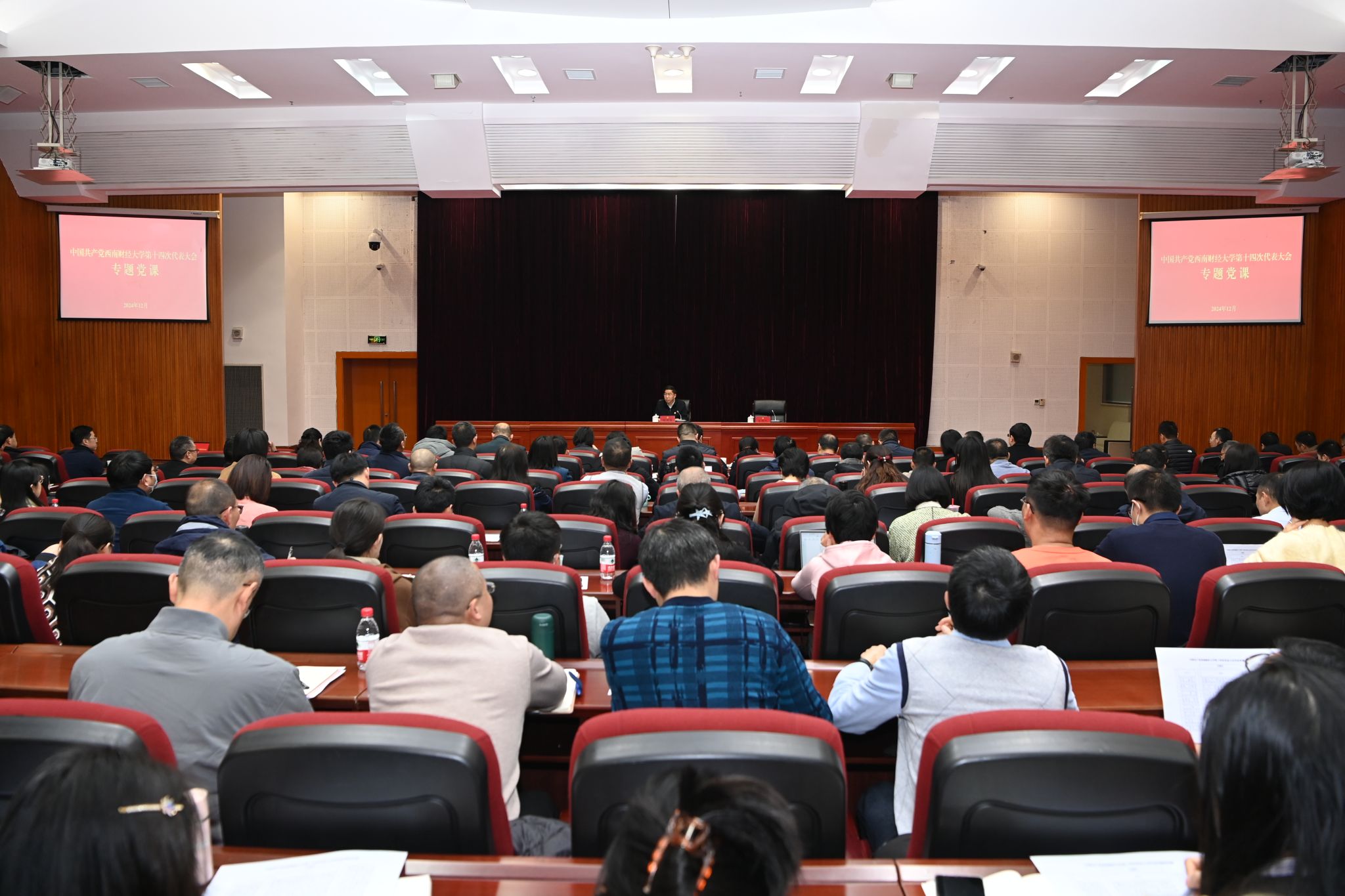 12月11日,党委书记赵建军为参加中国共产党beat365vip官网第十四次代表大会的244名代表讲授专题党课,强调要深入学习贯彻习近平总书记在党的二十届三中全会和全国教育大会上的重要讲话精神,深刻认识学校第十四次党代会的重大意义和主要任务,明晰党代表的职责权利和任务要求,深化理论武装、统一思想认识、提升履职能力、强化责任担当,以饱满的政治热情和昂扬的精神状态参加大会,为学校第十四次党代会胜利召开打牢思想基础、提供坚强保障。
