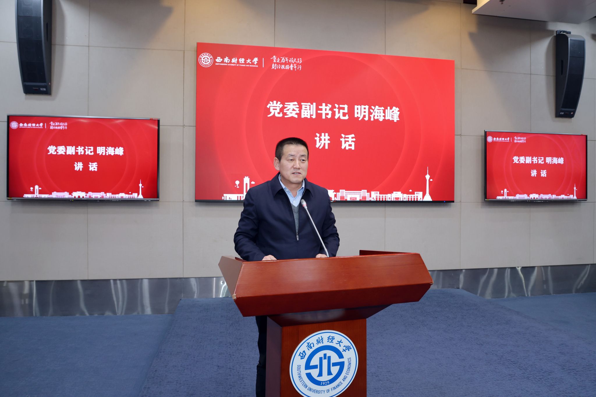 明海峰代表学校党委向支持学校实践育人工作的相关单位表示感谢。他勉励广大师生珍惜荣誉、再接再厉,希望大家在实践中学真知、悟真谛,以积极开放的心态吸纳新知识,思考新问题,寻求新发现,对标“新财经”,练就真本领,将所学知识转化成实际成果,为破解发展难题贡献青春智慧。以火热青春,献礼学校百年华诞,奋力跑好“财经报国,青年有为”的百年接力。