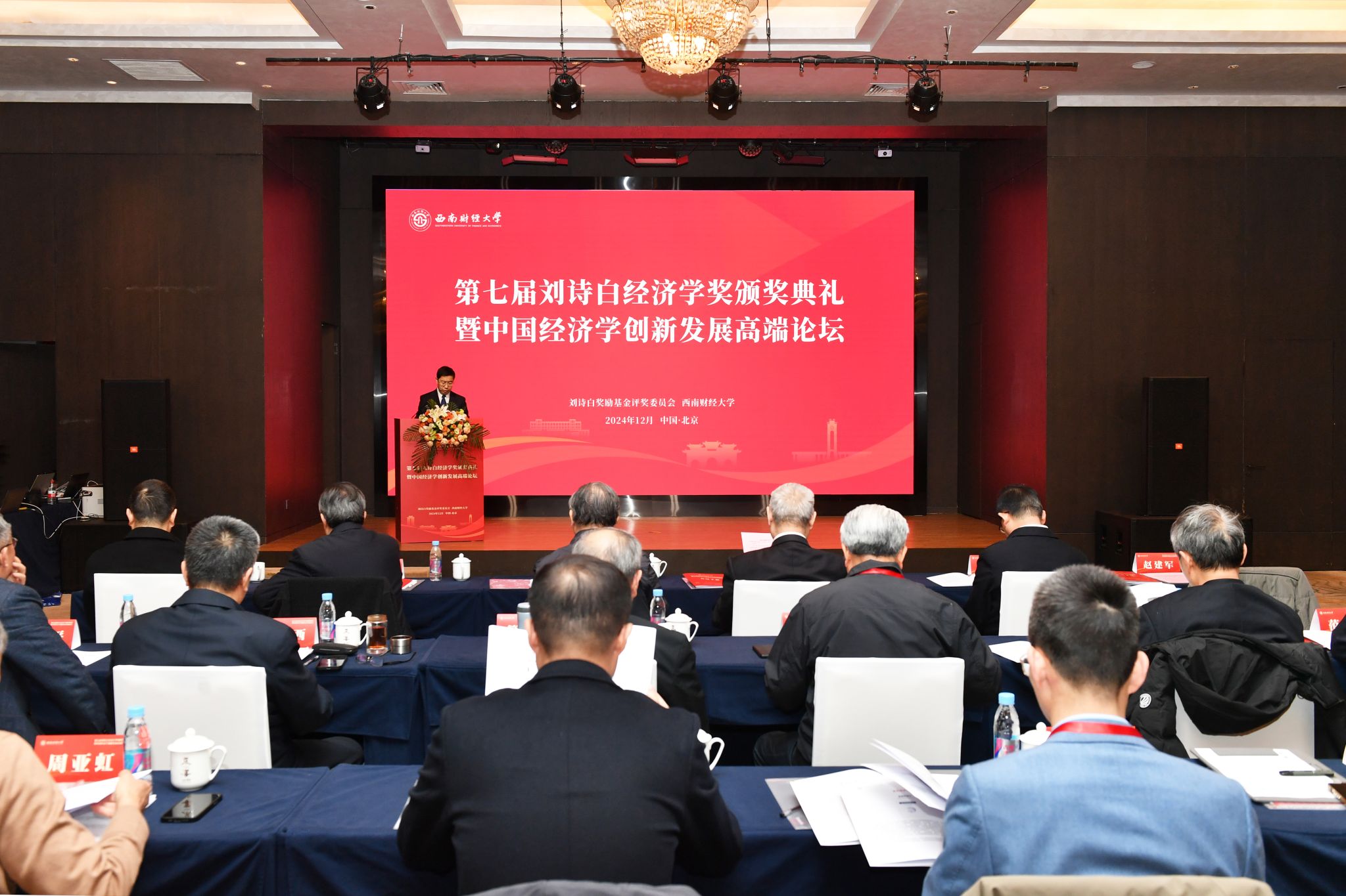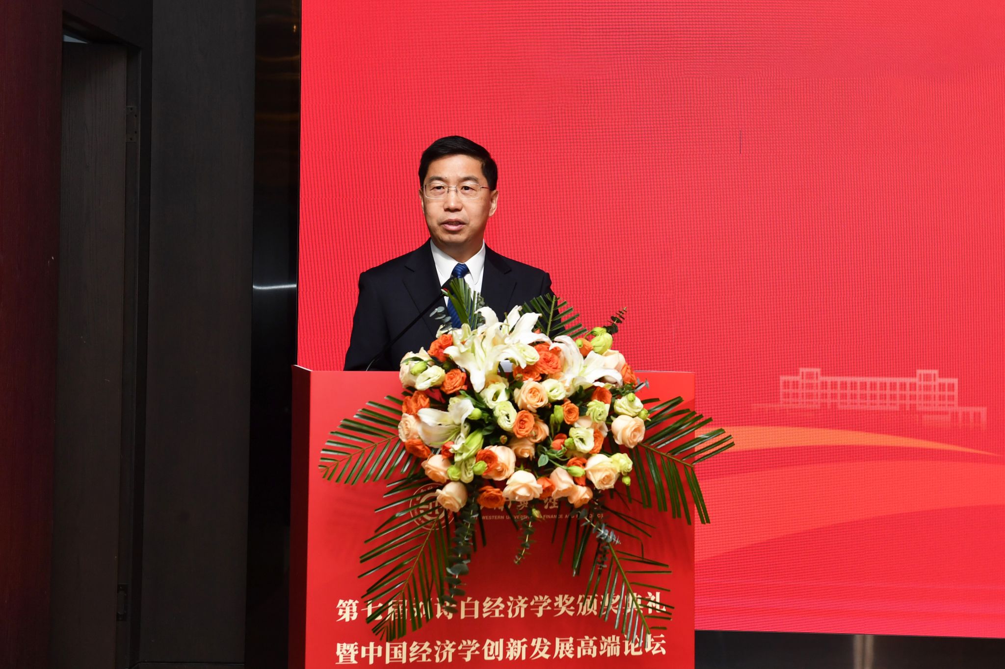 赵建军在致辞中对莅临典礼会议的领导嘉宾及校友表示热烈欢迎,向第七届刘诗白经济学奖获奖者致以祝贺。他指出,刘诗白经济学奖是刘诗白奖励基金与beat365vip官网联合设立的面向全国的经济学奖项,自2012年设立至今,始终坚持正确评价导向、强化人才引领驱动,着力实施品牌建设,在推动中国经济学理论创新,繁荣发展中国特色哲学社会科学,弘扬刘诗白教授等老一辈经济学家勇于突破的理论创新精神,发掘当代经济学的经典之作,遴选和培养高素质理论人才等方面产出了累累硕果。他强调,党的十八大以来,习近平总书记围绕哲学社会科学工作发表系列重要论述,为新时代新征程我国哲学社会科学繁荣发展指明了前进方向、提供了根本遵循。西南财大将深入贯彻落实习近平总书记关于哲学社会科学的重要论述精神,坚持扎根中国大地,把研究阐释习近平新时代中国特色社会主义思想作为首要任务,集中提炼打造标识性概念、原创性理论、体系化知识,深入推进“习近平经济思想与伟大实践”一流学科培优行动,着力推动建构中国哲学社会科学自主知识体系,努力建设成为中国特色哲学社会科学基础理论创新基地和领军人才培养基地。赵建军诚邀与会嘉宾和广大校友在百年校庆之时莅临“学术校庆”系列活动,共襄盛举、同庆佳期。
