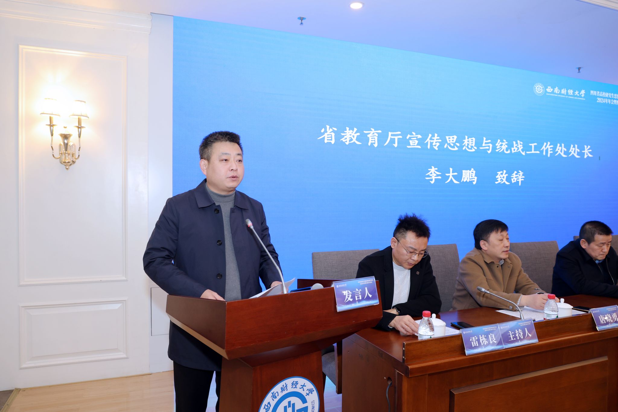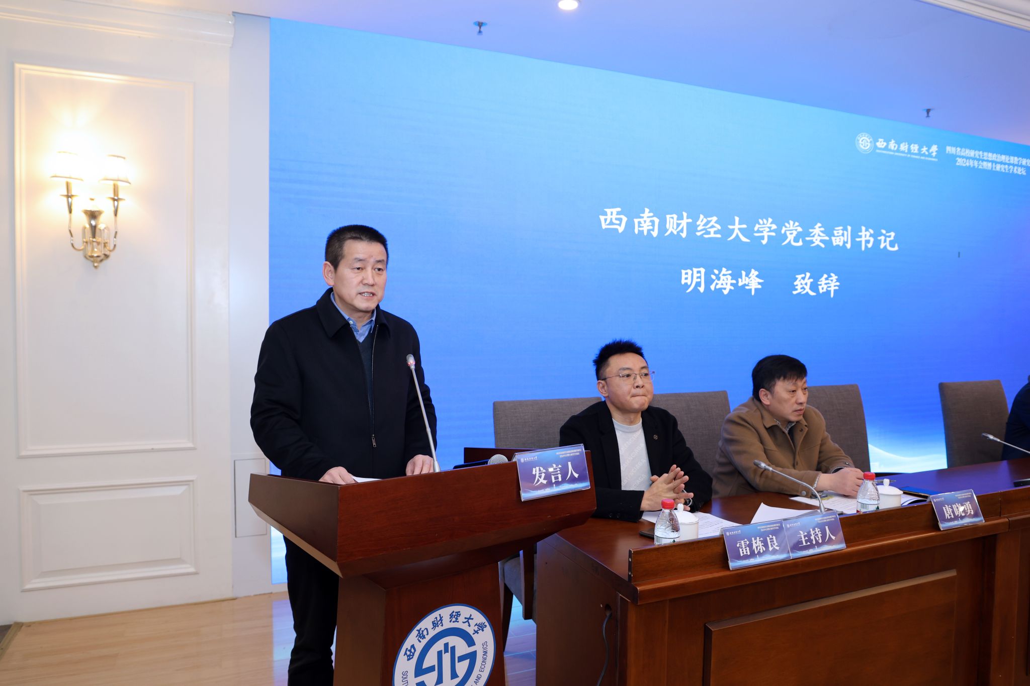 学校党委副书记明海峰,四川省教育厅宣传思想与统战工作处处长李大鹏,四川省高校研究生思政课教学研究会会长、四川大学马克思主义学院院长蒋永穆出席开幕式并致辞。学校马克思主义学院党委书记雷栋良主持开幕式。