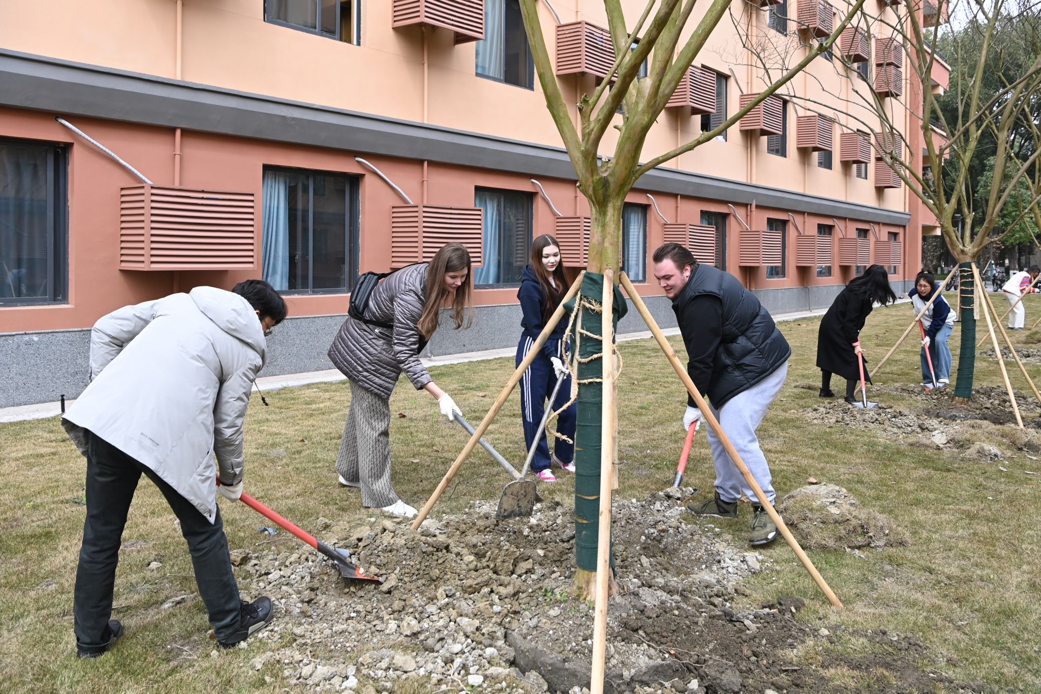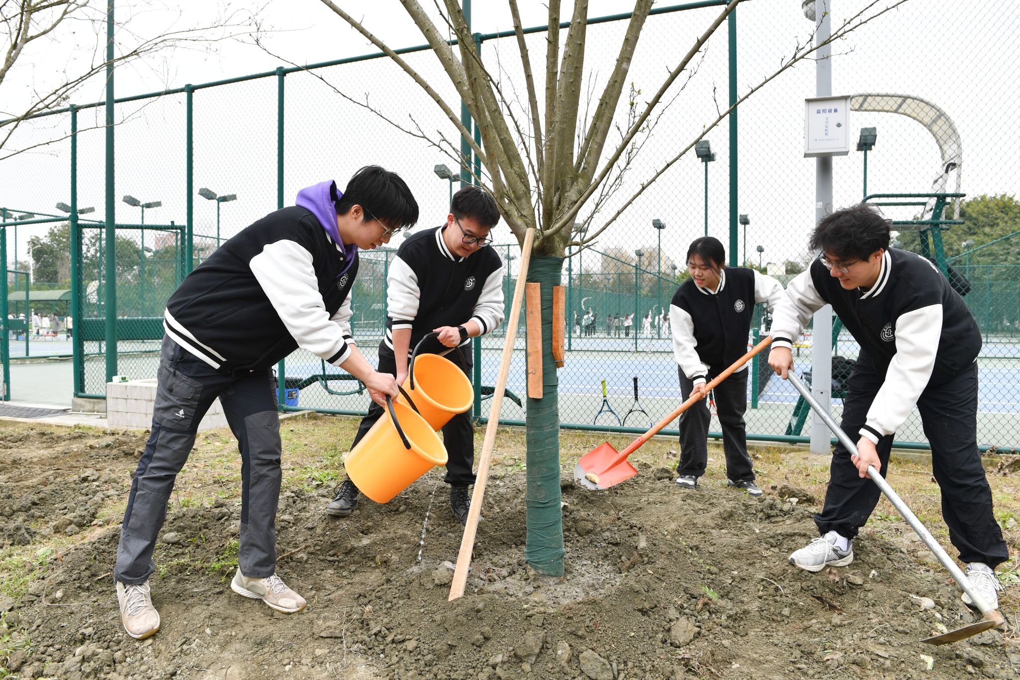 活动分为植树造林与养树护树两大板块。柳林校区研究生公寓网球与篮球场间,师生们挥锹铲土、扶苗围堰,共同栽植30株垂丝海棠,形成了别具特色的运动区生态景观带。光华校区绿杨公寓公共绿地内,垂丝海棠、紫薇、金桂等71株乔灌木依次入位,通过科学配植构建了四季轮换的绿化景观体系。养树护树方面,学校在光华、柳林两校区划分36个劳动实践责任区,柳林校区各学院(研究院)将在3月内完成责任区树木施肥浇水、病虫害防治等工作,光华校区专业学位研究生培养单位也将同步开展施肥、浇水等养护活动,用实际行动呵护每一棵树木。
