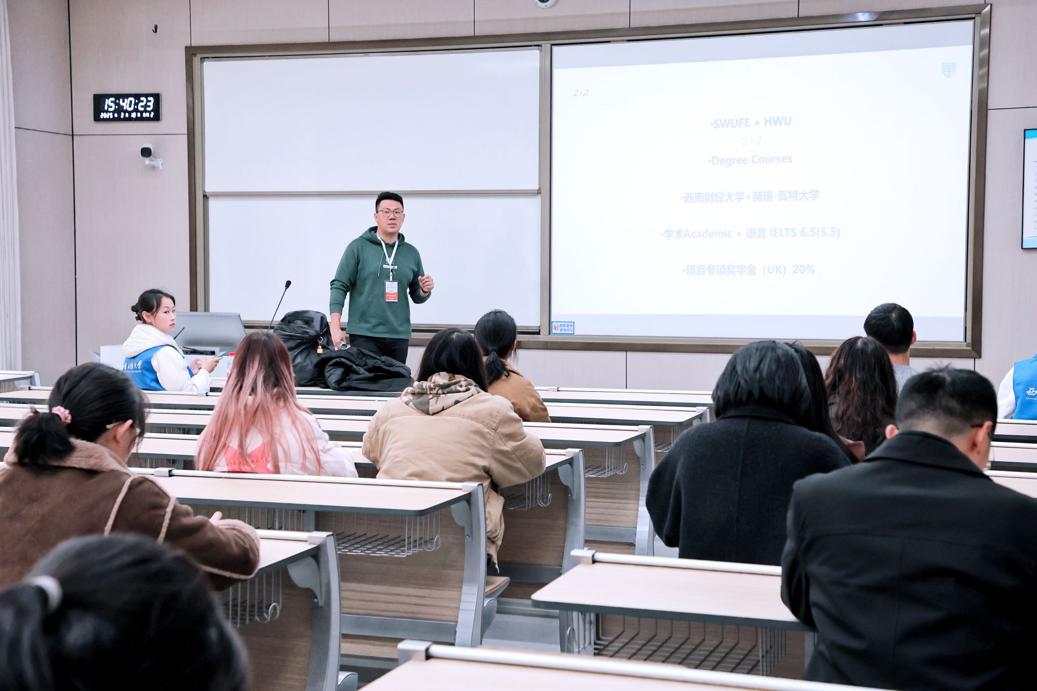 活动开始后,济民广场人流如织,各展位老师尽职尽责答疑解惑,就本科及研究生公派项目、交换项目、短期游学、双学位项目、硕士学位项目等,零距离、面对面为学子提供个性化咨询服务。精品宣讲会在颐德楼同步进行,海外院校推介重点项目,介绍beat365vip官网、专业特色、录取要求、申请流程、注意事项等,方便学生深入了解项目。