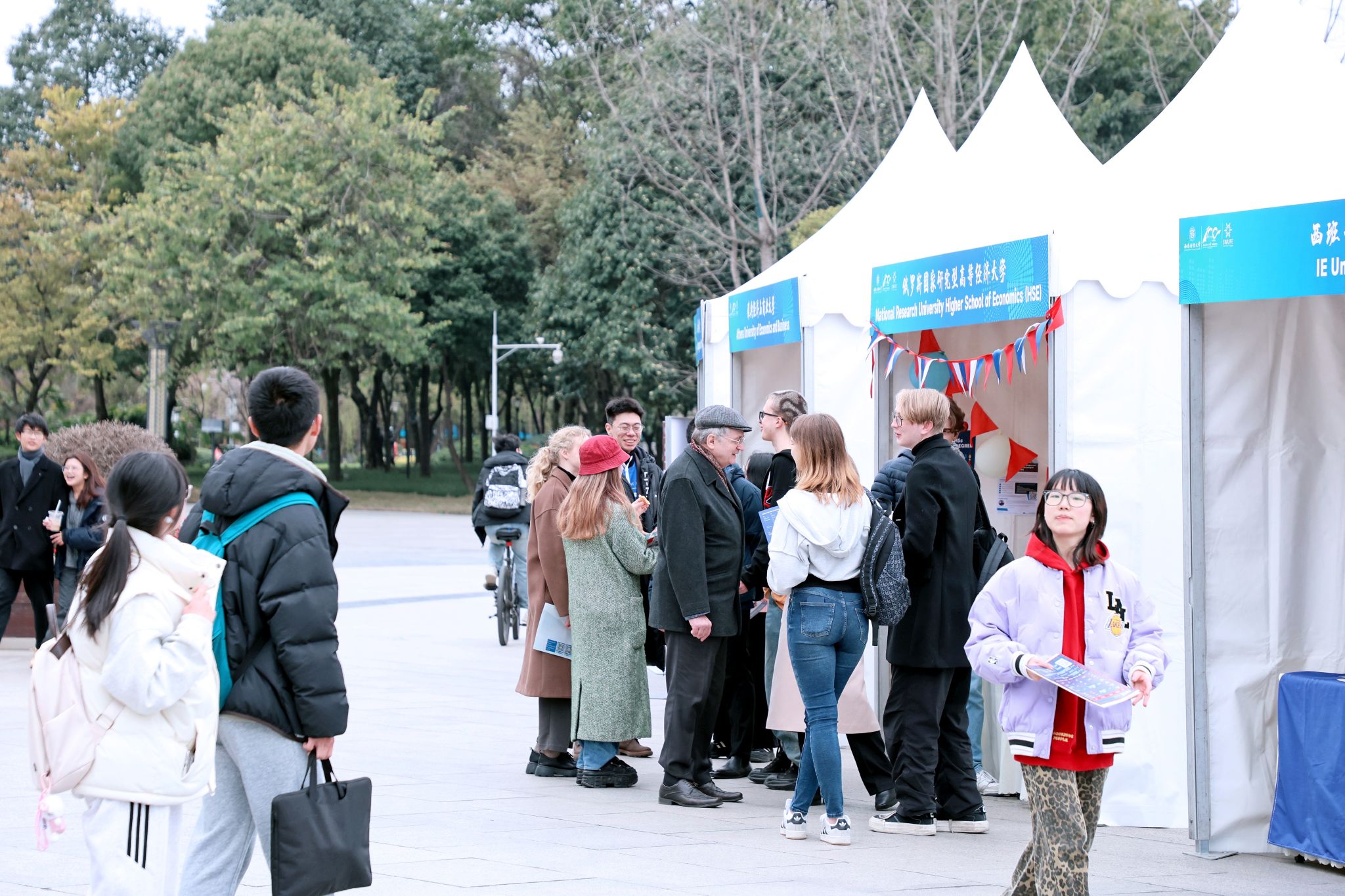 今年双选会以展会和宣讲会形式并轨进行,现场设立47个展位,展出200余个交流项目,举办17场宣讲会。除了20个校内单位参展,还邀请了来自12个国家和地区的27所合作院校,包括10所QS排名前200高校,11所拥有EQUIS、AACSB、AMBA三大认证高校。
