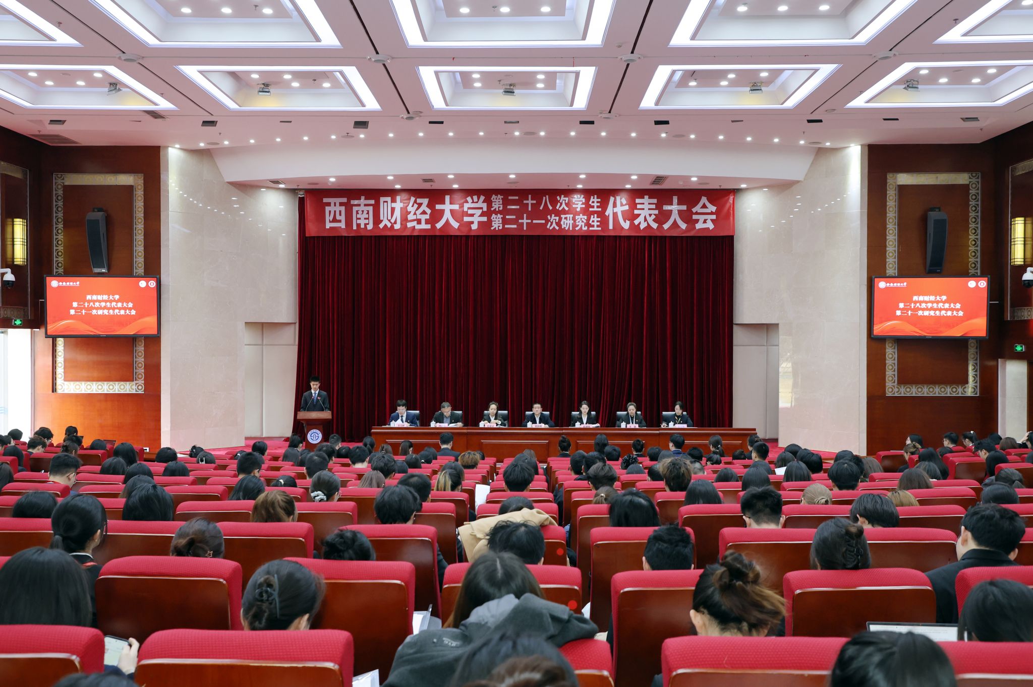 3月21日,经学校党委和四川省学联批复同意,beat365vip官网第二十八次学生代表大会、第二十一次研究生代表大会在柳林校区召开。学校党委副书记明海峰,四川省学生联合会驻会执行主席赵鸿绵,成都市学生联合会驻会执行主席史嘉灵出席会议。学生工作部、校团委、研究生院相关负责人以及各学院(研究院)团组织负责人,全校159名学代会代表、124名研代会代表参加会议。