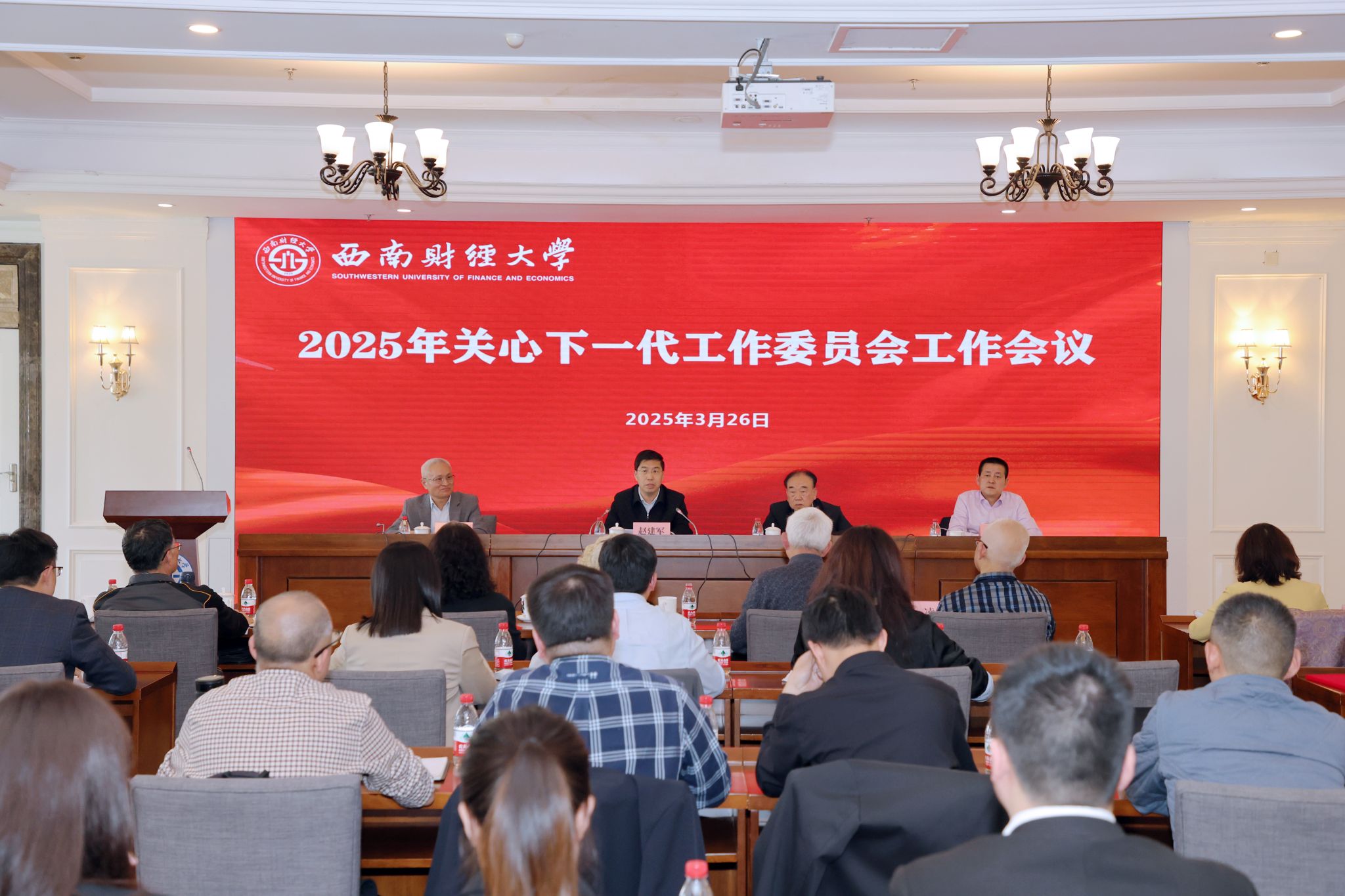 3月26日,学校2025年关工委工作会在光华校区住友苑2楼会议室召开。学校党委书记赵建军,党委副书记、关工委主任明海峰,原党委副书记、关工委顾问廖明铨,原党委副书记、关工委副主任曾道荣,关工委委员、相关职能部门负责人、学院(研究院)二级关工委负责人,学校关工委学生委员等参会。
