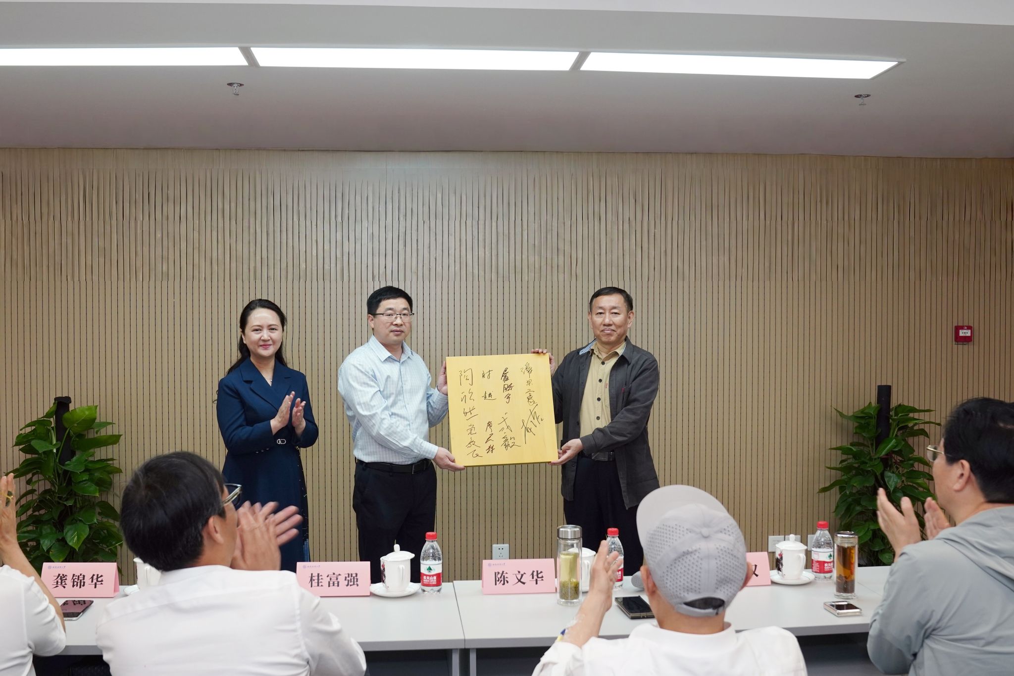 省围棋协会副主席宋雪林代表省棋协向beat365赠送了签有世界围棋冠军签名的棋盘。