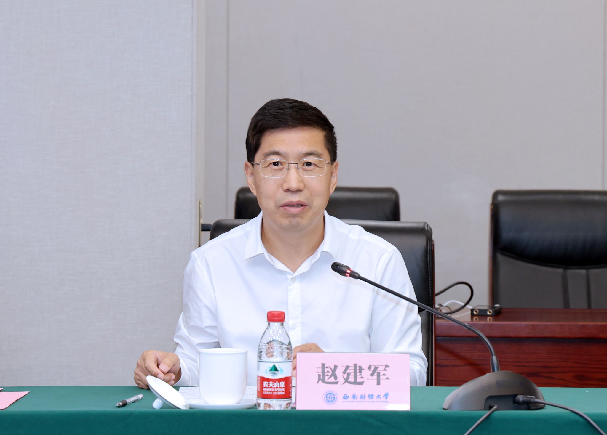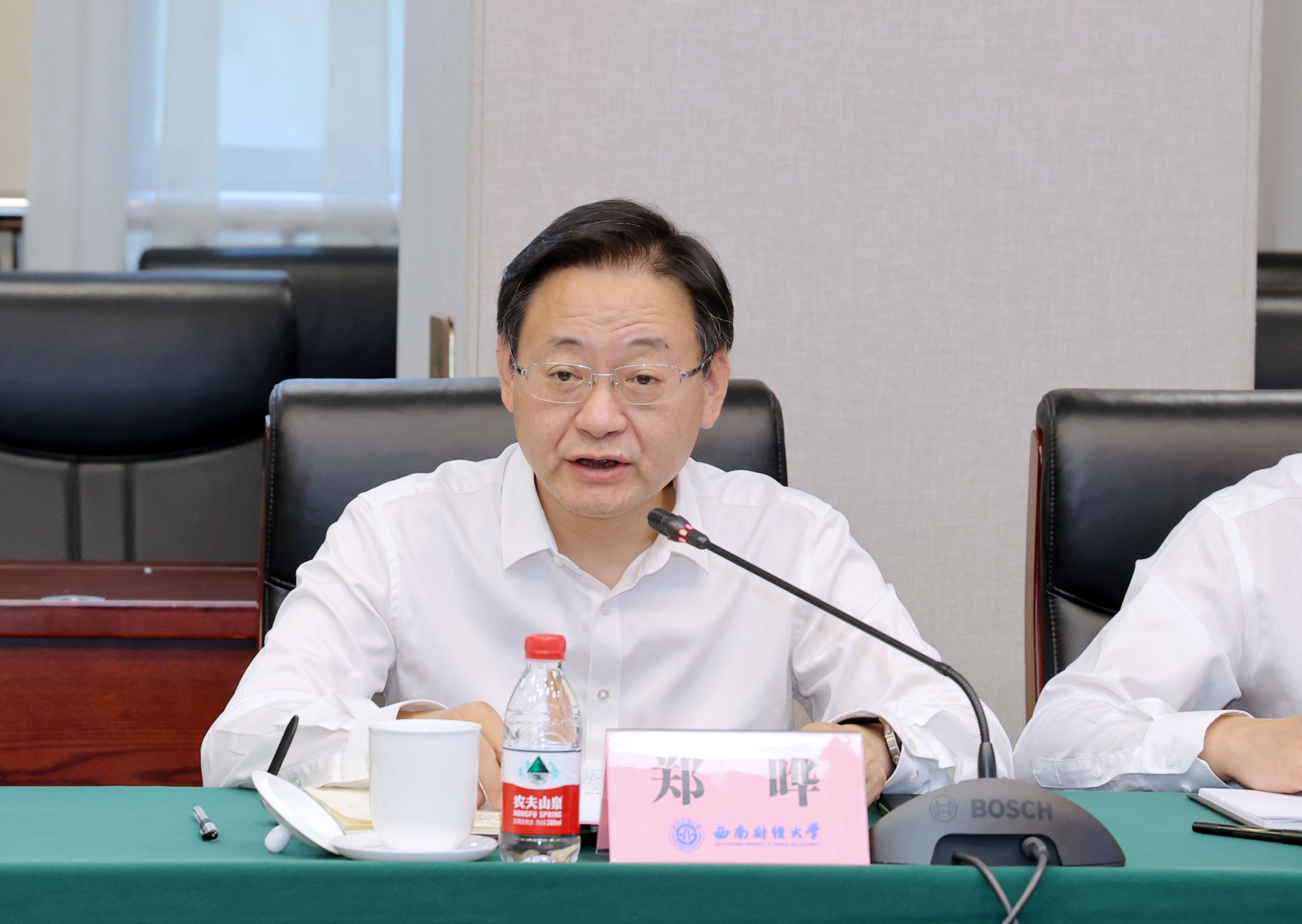 赵建军对郑晔一行表示热烈欢迎,介绍了学校历史沿革、基本概况与办学特色。他指出,学校与四川银行已形成全方位、多层次、宽领域良好合作格局。未来双方将在科学研究、人才培养、社会服务等方面实现优势互补,共同推进高水平研究平台建设,实现产学研深度融合,打造校企合作标杆范式。赵建军围绕站位高、合作实、效果显著、合作共赢等提出四点合作建议。