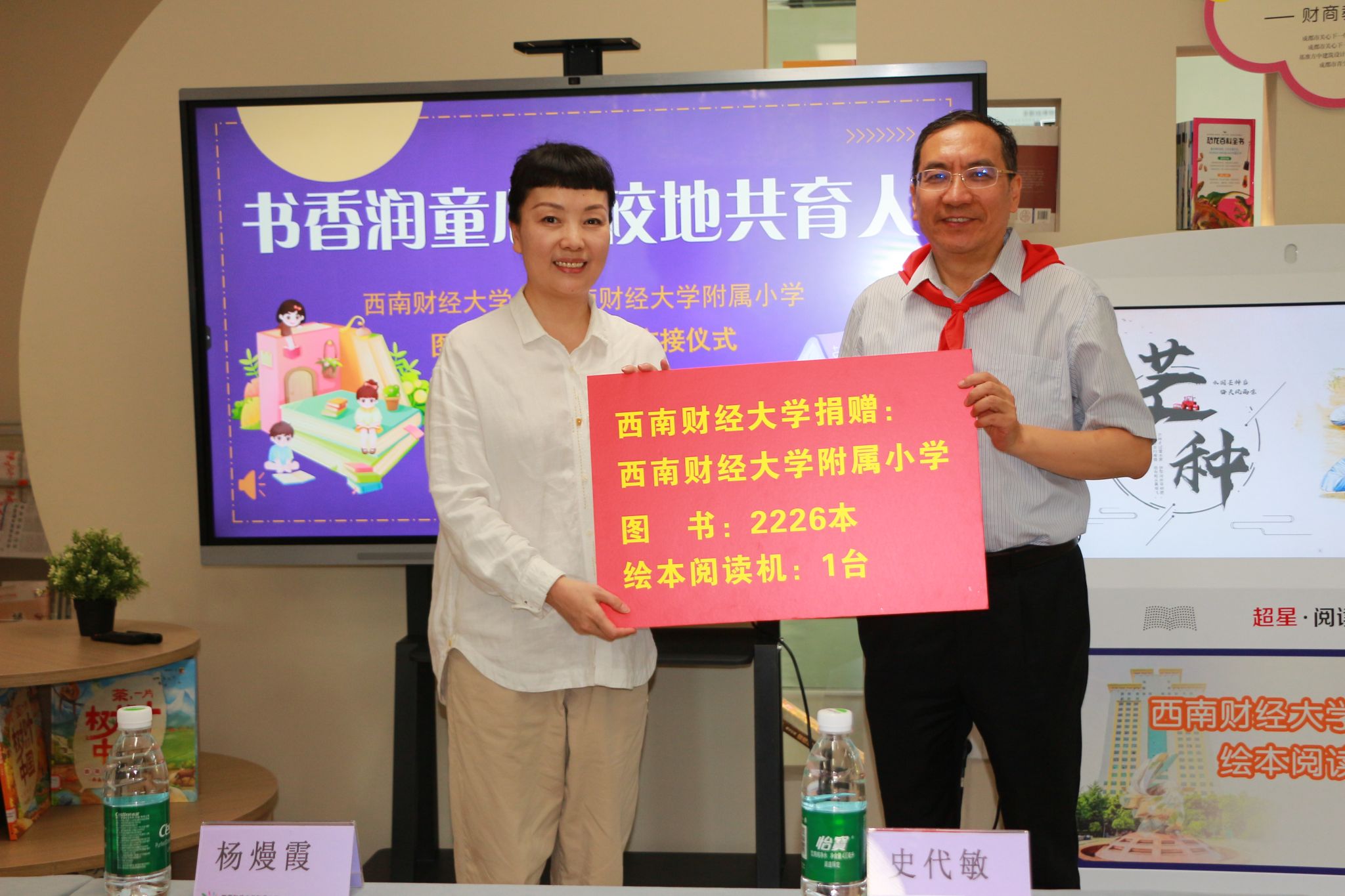 5月22日上午,以“书香润童心,校地共育人”为活动主题的捐赠交接仪式在附属小学光华图书室举行。学校党委常委、副校长史代敏出席活动并致辞。他指出,自2018年学校与青羊区人民政府签署共建合作协议以来,附小教育教学质量稳步提升,社会美誉度关注度不断增强。学校高度重视共建合作,期望借助高等教育与基础教育资源互通桥梁,让校地合作之花常开不败,结出更多丰硕育人之果。史代敏代表学校赠书,beat365附小党支部书记、校长张幼玲接书并致答谢词。史代敏和校工会常务副主席杨熳霞、图书馆馆长龚金国、校工会副主席邓岚,为参与家长、阅读家庭、beat365附小阅读之星颁奖。