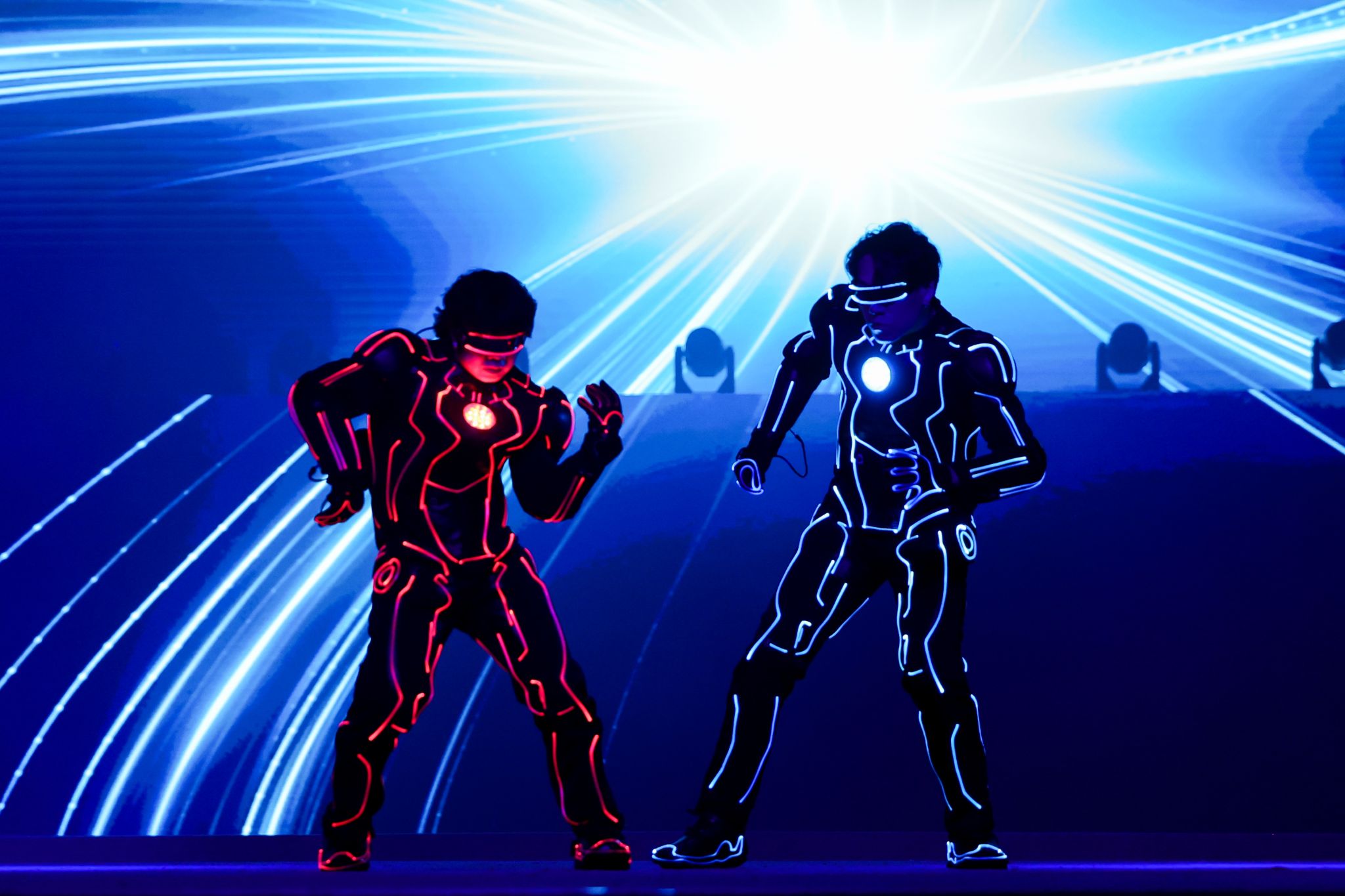 科技舞蹈《未来已来》让人眼前一亮,充满科幻感的舞台表演,与炫酷的数字世界光影交织,通过科技与艺术的融合,展现“新财经”的创新活力与无限可能。