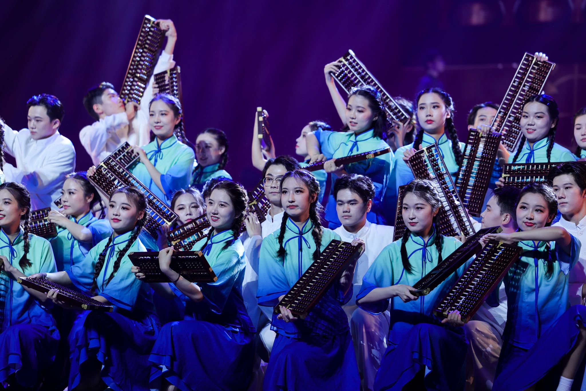 踏着欢快的节奏,师生们熟练拨动算盘,珠算口诀整齐有力——舞蹈《噼里啪啦算盘响》中,明快的算珠声与跃动的身影相映成趣,展现出师生专注求知、蓬勃向上的精神面貌。