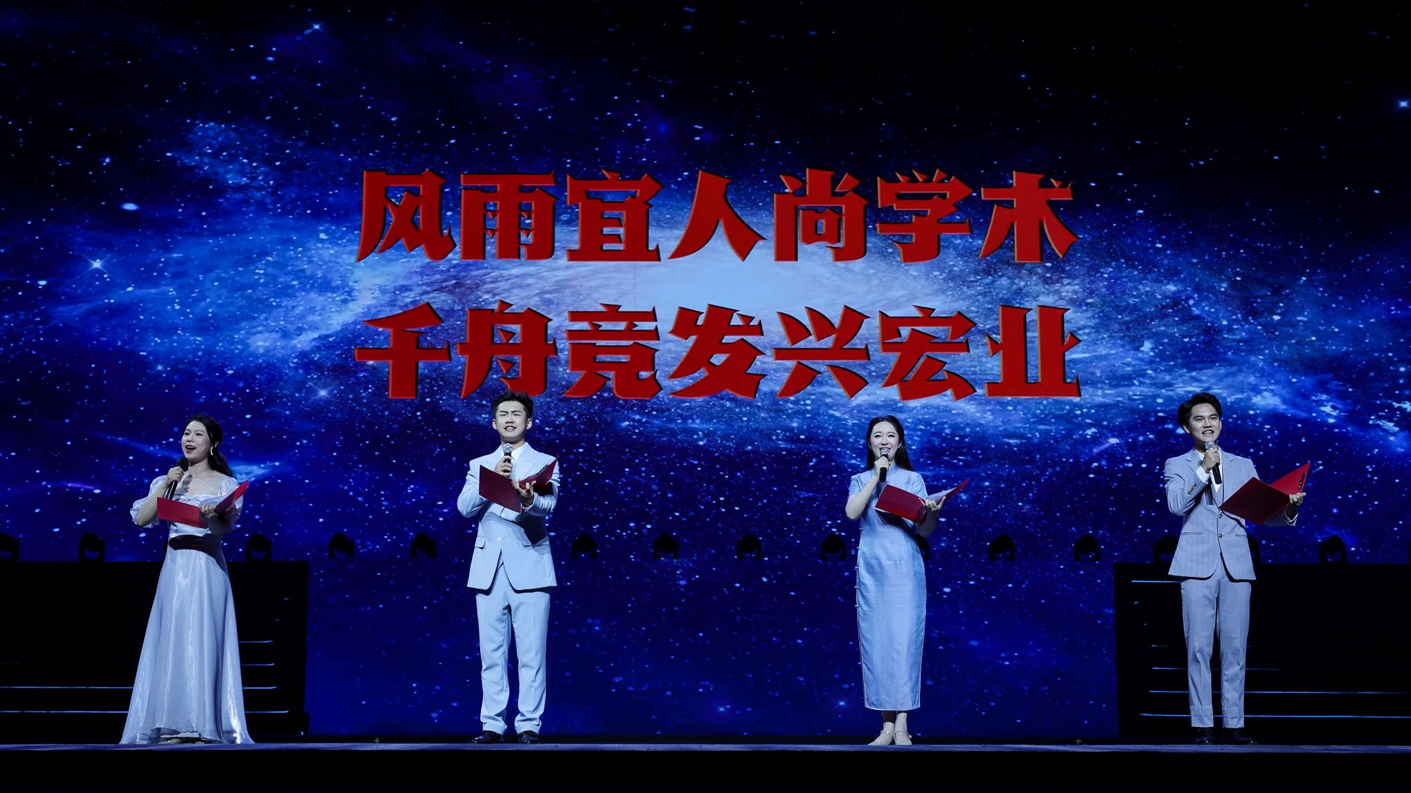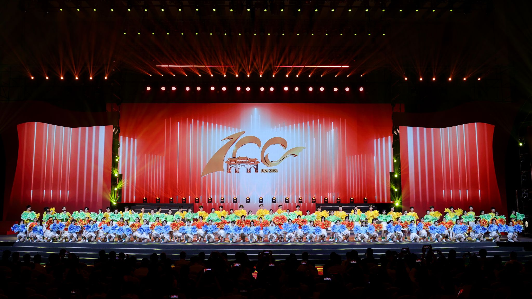 开场歌舞《点亮未来》以动感旋律和炫彩灯光,将现场观众带入百年校庆喜庆氛围。激昂澎湃、充满活力的歌舞表演,为晚会注入热烈氛围与青春活力。