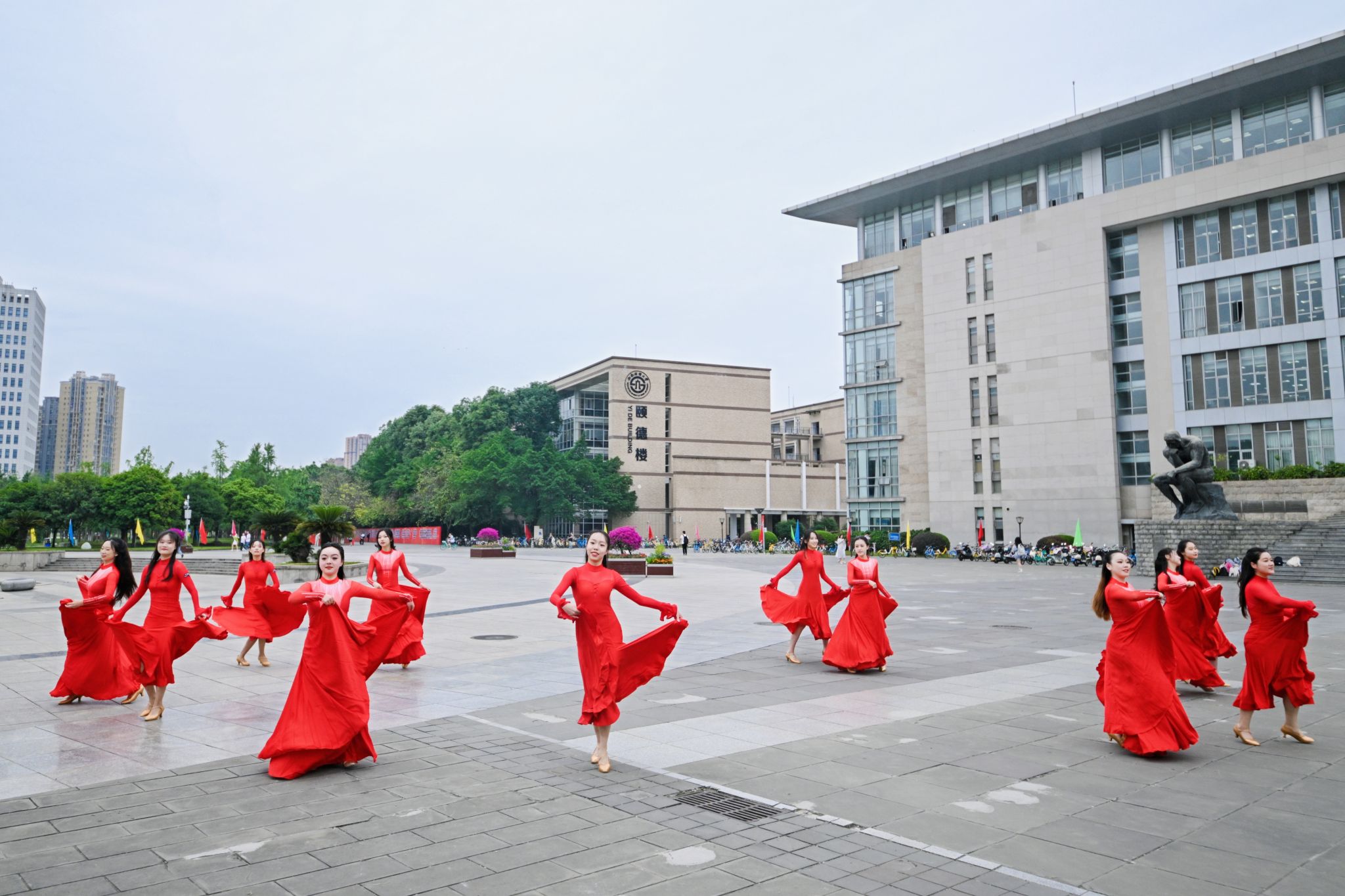 队伍环绕济民广场而行,10余位beat365师生身着红裙翩翩起舞,裙摆飞扬间、激昂乐音中,尽显对学校百年华诞的热忱庆贺。经世楼前,年轻的朋友们列队为大家加油鼓劲,鞭策着全体beat365人以更加饱满的姿态启航新百年。道路两侧彩旗猎猎,师生们步履铿锵,满怀加快建设财经特色鲜明的世界一流大学,为加快建设教育强国、金融强国贡献更大beat365力量的壮志豪情迎向胜利的终点。