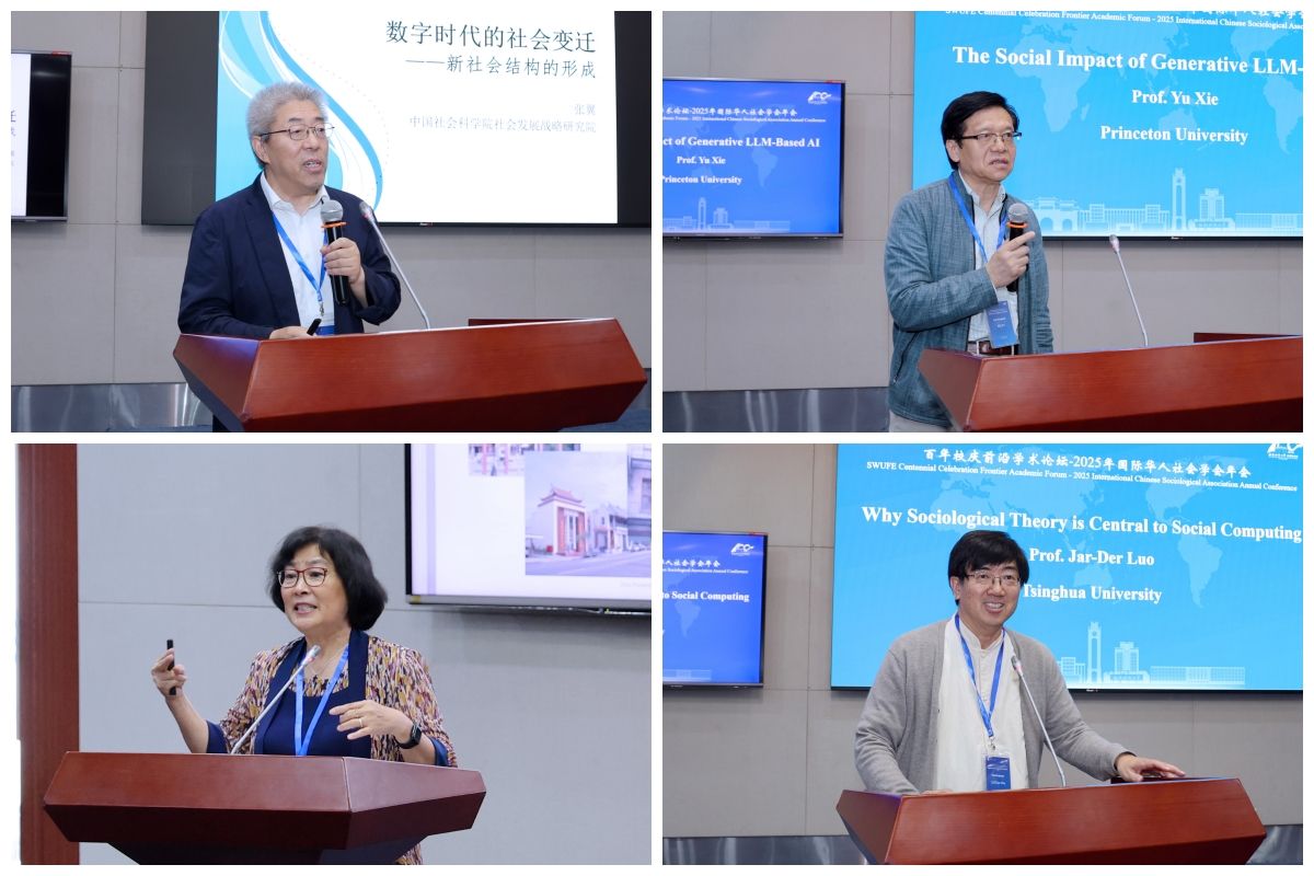 主旨演讲环节,中国社会科学院学部委员、中国社会学会会长张翼研究员聚焦数字时代的社会分层问题研究,认为数字社会对社会分配已经产生重要影响,数字时代的社会建构、社会分层等引发的社会结构变化问题需要学界予以重视和深入探讨。美国国家科学院院士、美国艺术与科学院院士、普林斯顿大学谢宇教授分析了人工智能对社会发展的影响,认为中国在人工智能领域发展出色,基于应用场景和规模效应优势,未来将引领全球。美国国家科学院院士、美国艺术与科学院院士、加州大学洛杉矶分校周敏教授探讨了群体主义网络与网络个人主义之间的关系,并对国际移民社会网络理论进行反思。清华大学罗家德教授分享了社会学理论与社会计算科学关系的研究,认为社会计算时代来临,大语言模型、智能体数据等大数据不断出现,为社会学理论更新与发展提供了机遇。