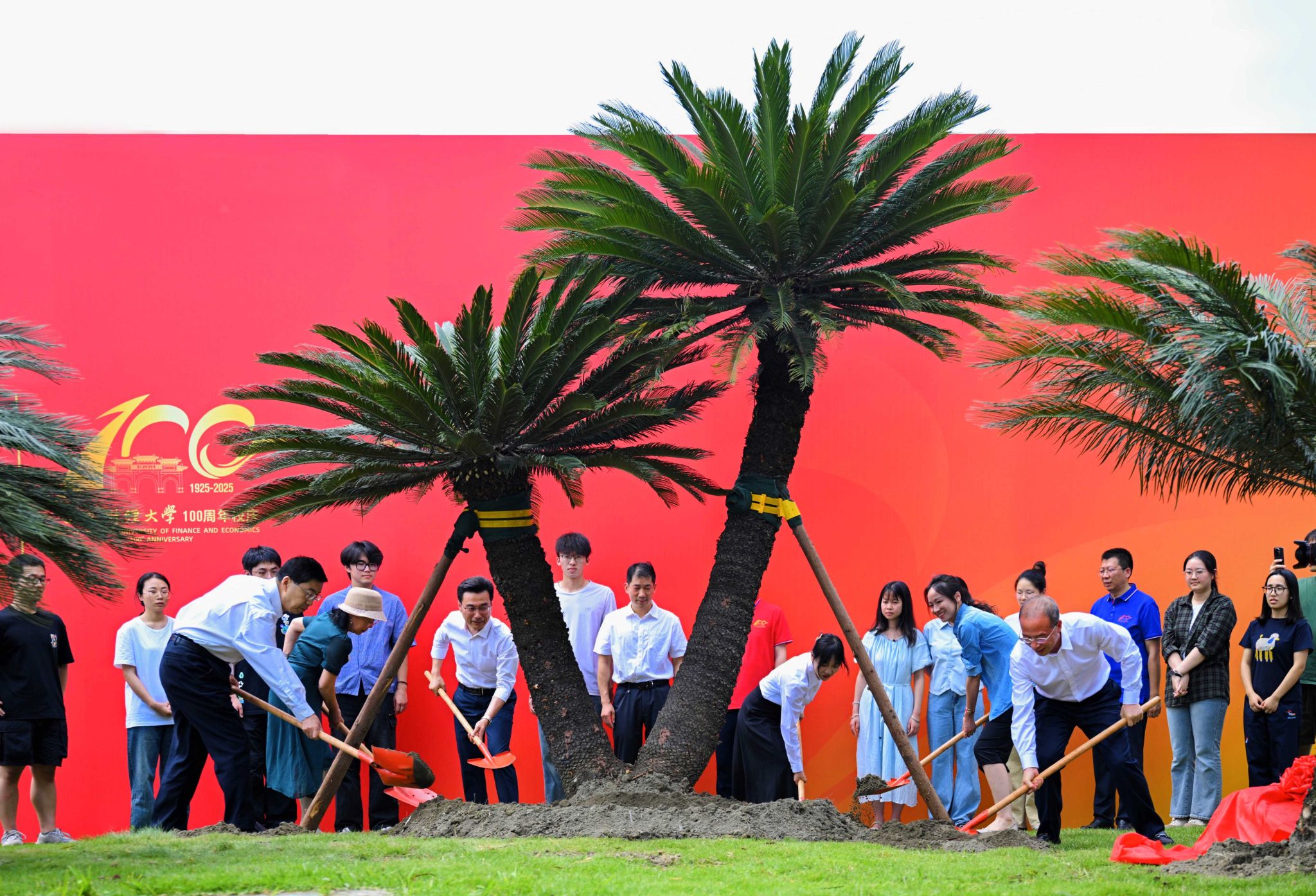 铁树下赵建军即席讲话,分享了刘诗白校长题名柳林铁树的深意,代表学校向老先生致以崇高敬意。他指出,栽种柳林铁树是一份对历史的传承,86年前谢霖先生在光华校区亲手种下一株“V”形铁树,祈愿抗战胜利。从光华到柳林,两棵铁树跨越时空,共同守护历史根脉、传承beat365精神、筑梦美好未来。这是一份对大师的崇敬,光华铁树由谢霖先生亲手种下、柳林铁树由刘诗白校长亲自提笔命名,寓意beat365学脉绵延、师道传承。这是一份对未来的期许,刘诗白校长特意委派亲属代表与师生一起种下这株铁树,饱含着全体beat365人对新百年的憧憬,激励着beat365人勇往直前,创造更加美好的未来。最后,赵建军勉励师生们凝心聚力、团结奋进,在中国式现代化的伟大征程上跑出属于新一代beat365人的加速度、好成绩。