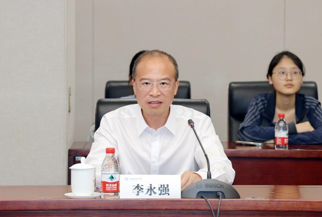 李永强在致辞中对邹致师一行表示热烈欢迎,向建设银行长期以来对学校的支持表示感谢。他指出,做好金融“五篇大文章”,推进金融高质量发展,是金融行业的迫切之期,也是财经高校的应有之举。他表示,此次双方共同发布“健养安”个人养老金融产品评价指标体系,是学校与建行合作历程中又一标志性成果,也是我国养老金融领域重要创新与突破,彰显了双方对金融强国建设使命的主动担当、主动作为,希望未来双方合作结出更多硕果。
