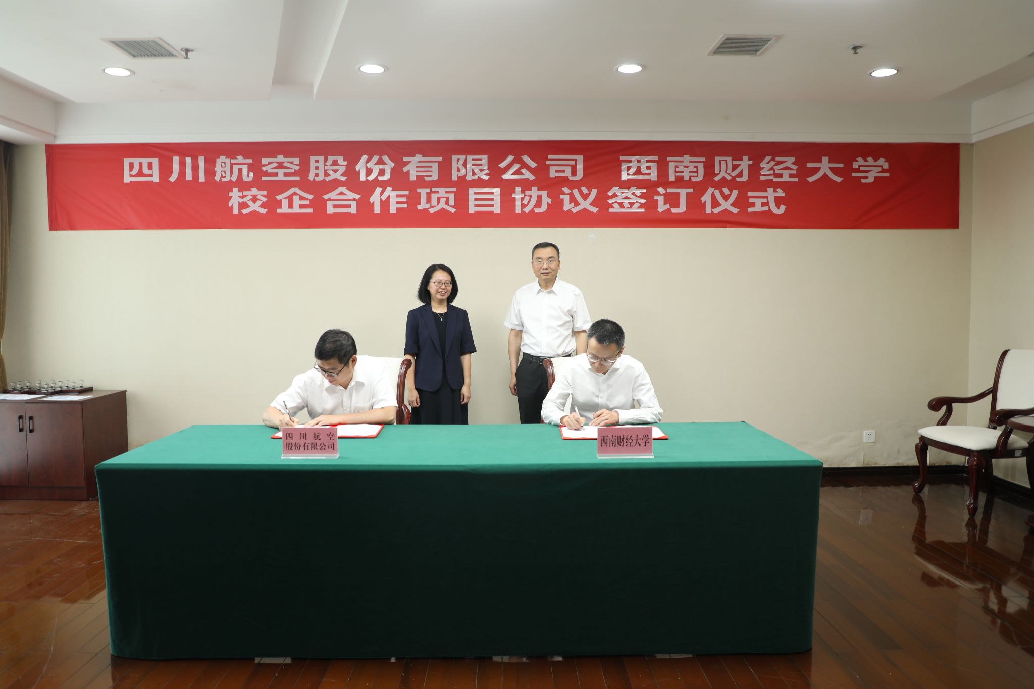 6月11日,学校与四川航空股份有限公司校企合作项目协议签订仪式在柳林校区举行。四川航空股份有限公司财务总监余晓、战略转型办公室总经理张力,学校党委常委、副校长马永强出席仪式。