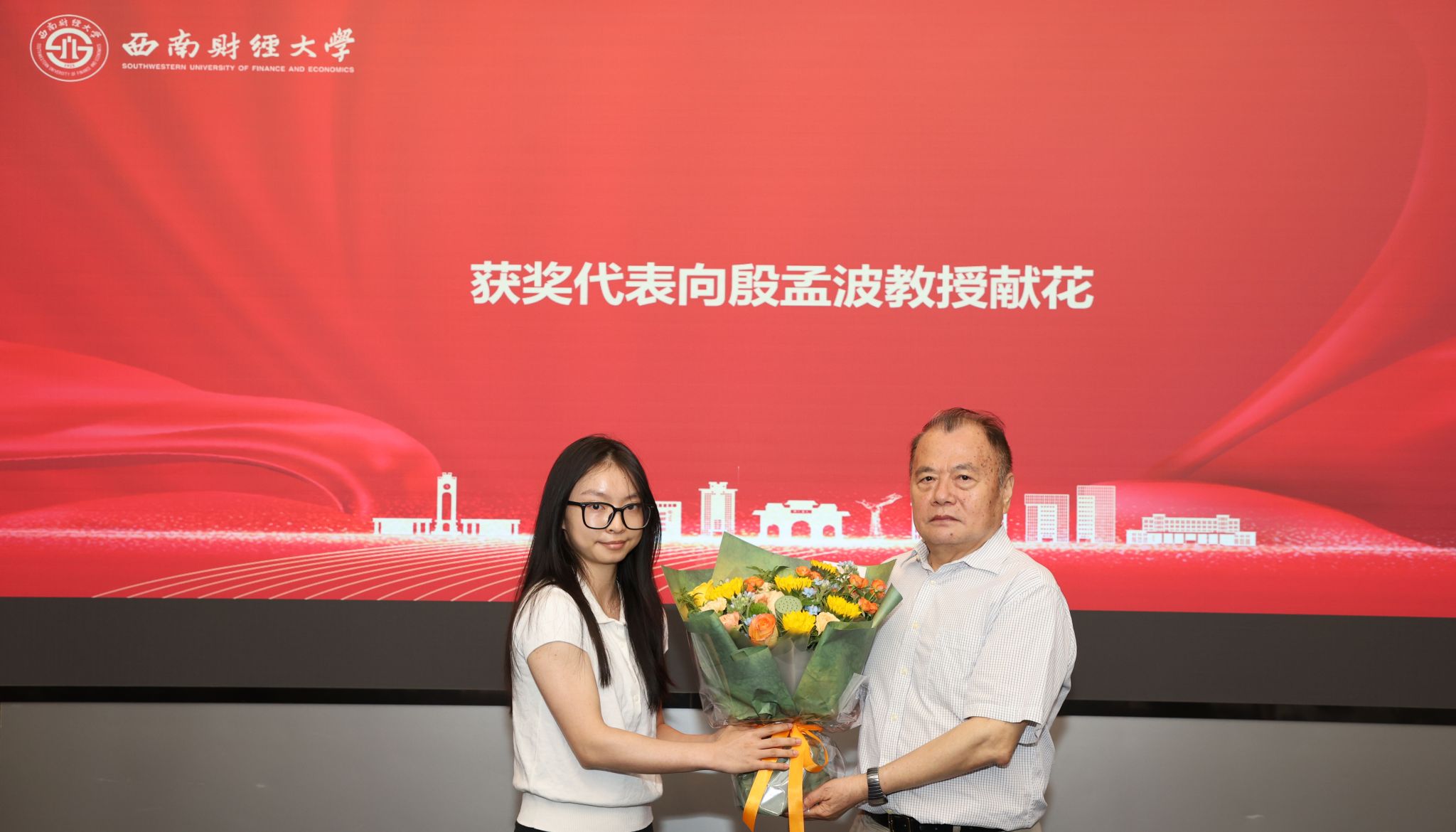 殷孟波、王擎和学院(研究院)负责人为获奖师生颁奖。获奖师生向殷孟波教授献花,表达诚挚感谢和深深敬意。