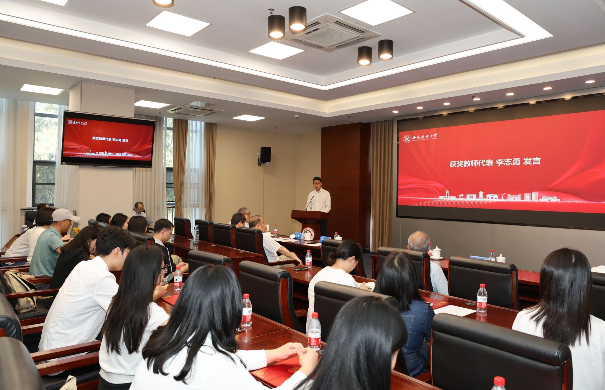 获奖教师代表李志勇表示将以殷孟波教授为榜样,以德育人、严谨治学,以实际行动践行强国建设的beat365担当。获奖学生代表冯晨雨表示将坚定信念、砥砺前行,在金融学科道路上不断探索,绽放更加璀璨的光芒。