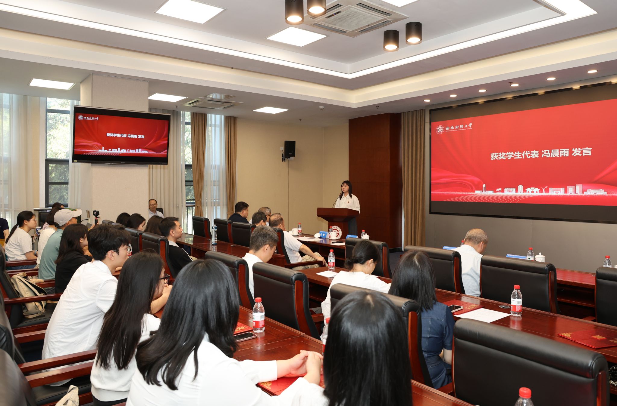 王擎代表学校向殷孟波教授为金融教育事业做出的卓越贡献和无私奉献表示感谢,向本次获奖的师生致以衷心祝贺。他指出,奖教(学)金赓续了殷孟波教授的教育理念和创新精神,为学校“双一流”建设和金融人才培养做出了积极贡献。他勉励广大师生以殷孟波教授为楷模,传承师者匠心、弘扬治学精神,积极进取,在金融教育的星辰大海中再创辉煌。